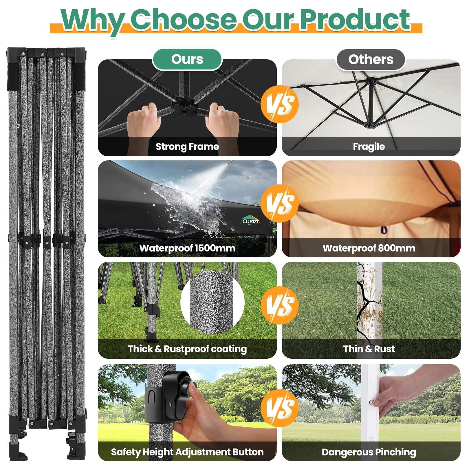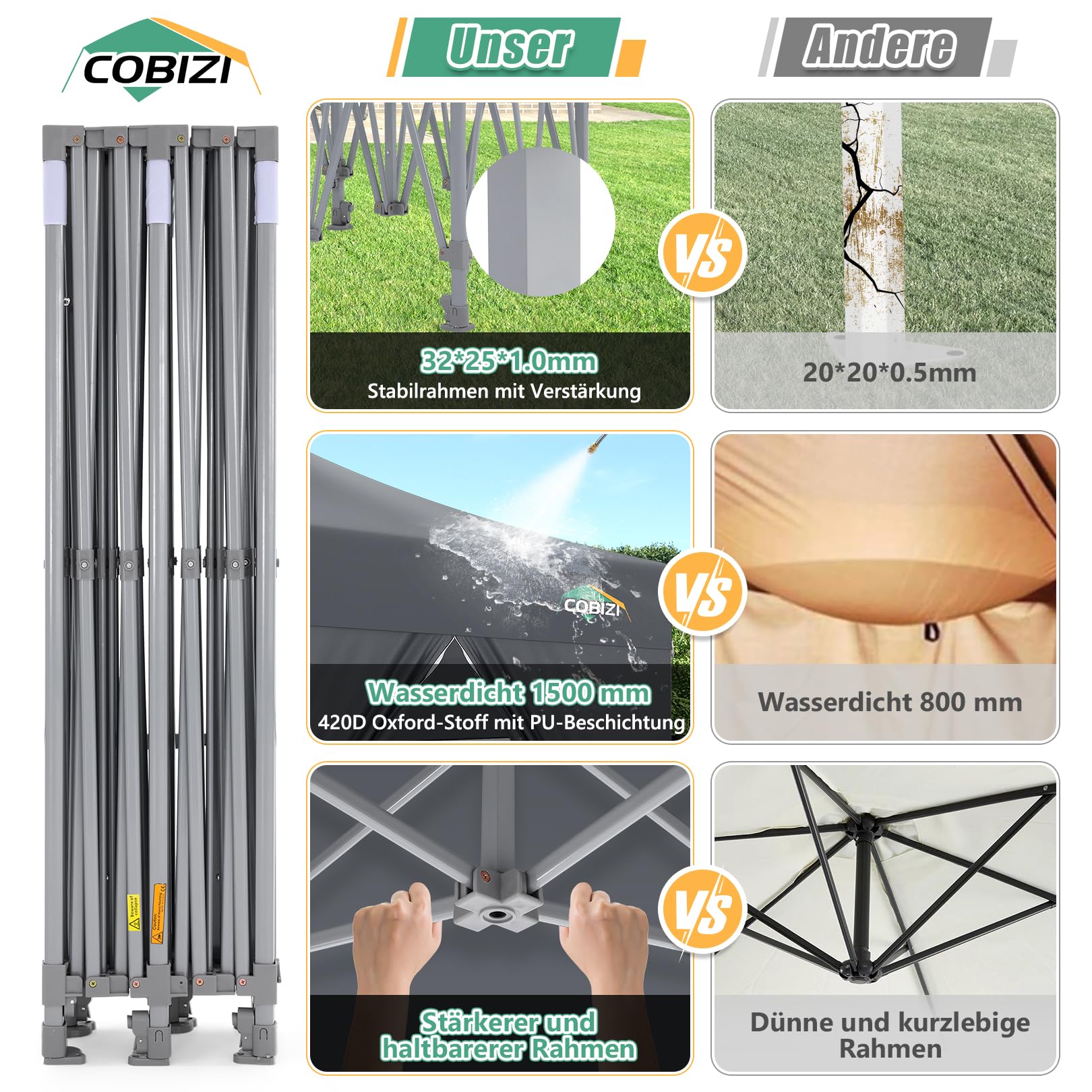 COBIZI Pavillon Faltpavillon 3x3 wasserdicht stabil Winterfest,Outdoor faltbar partyzelt,gartenpavillon mit 4 Seitenteilen und 4 Sandsack und Laufradtasche, Schwarz