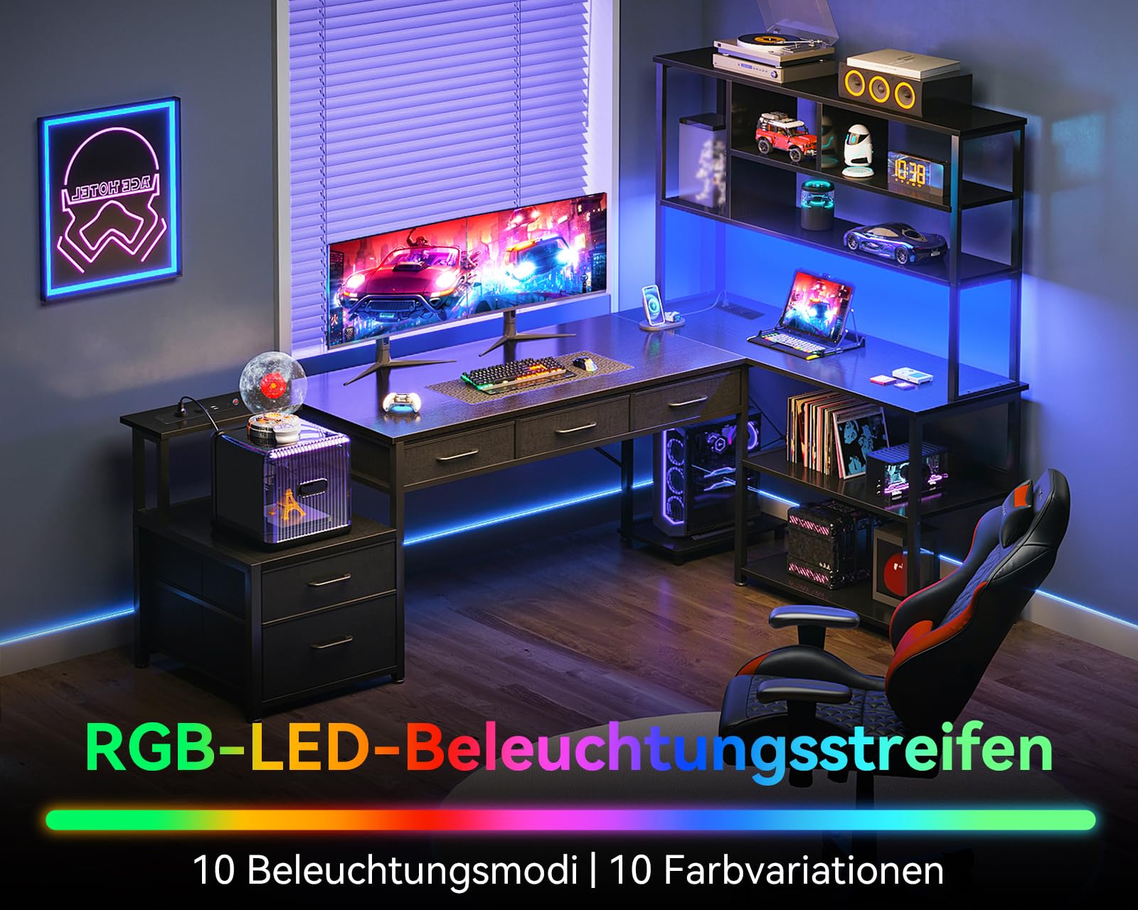 - Dynamic lighting: with 10 brightness levels and 10 modes, the LED lighting creates an inspiring atmosphere. Whether for home office, learning or gaming - adjust the light to your needs and enjoy modern design.