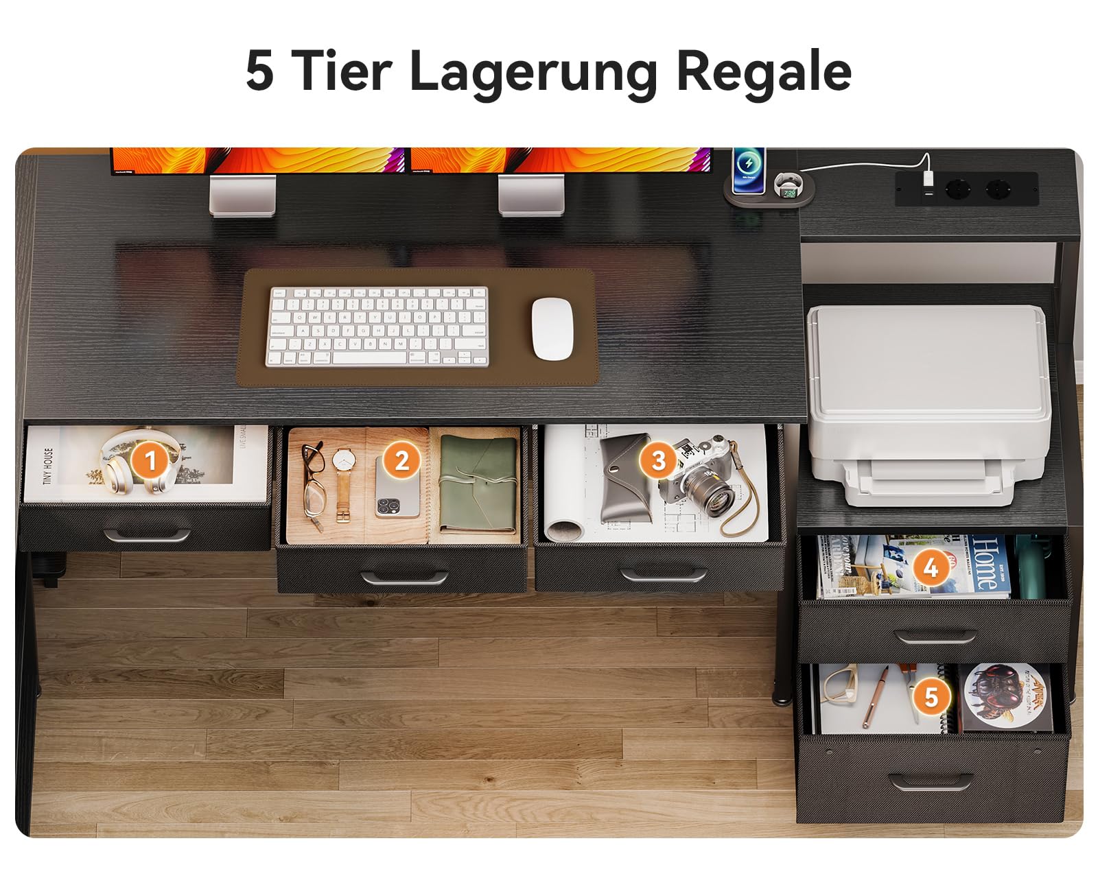 - Practical storage space: the Coleshome corner desk offers 5 drawers and 4 shelves for maximum storage space. PERFECT FOR BOOKS, DOCUMENTS AND OFFICE ACCESSORIES - Great for home office, study Organise everything easily and efficiently!