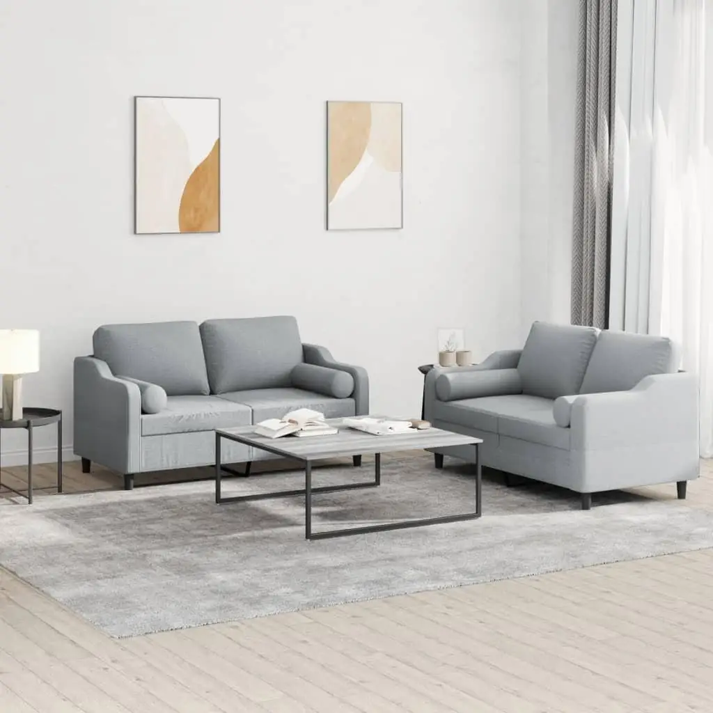 Comfortable Two-Piece Sofa Set with Cushions Light Gray Fabric Modern Living Room Furniture