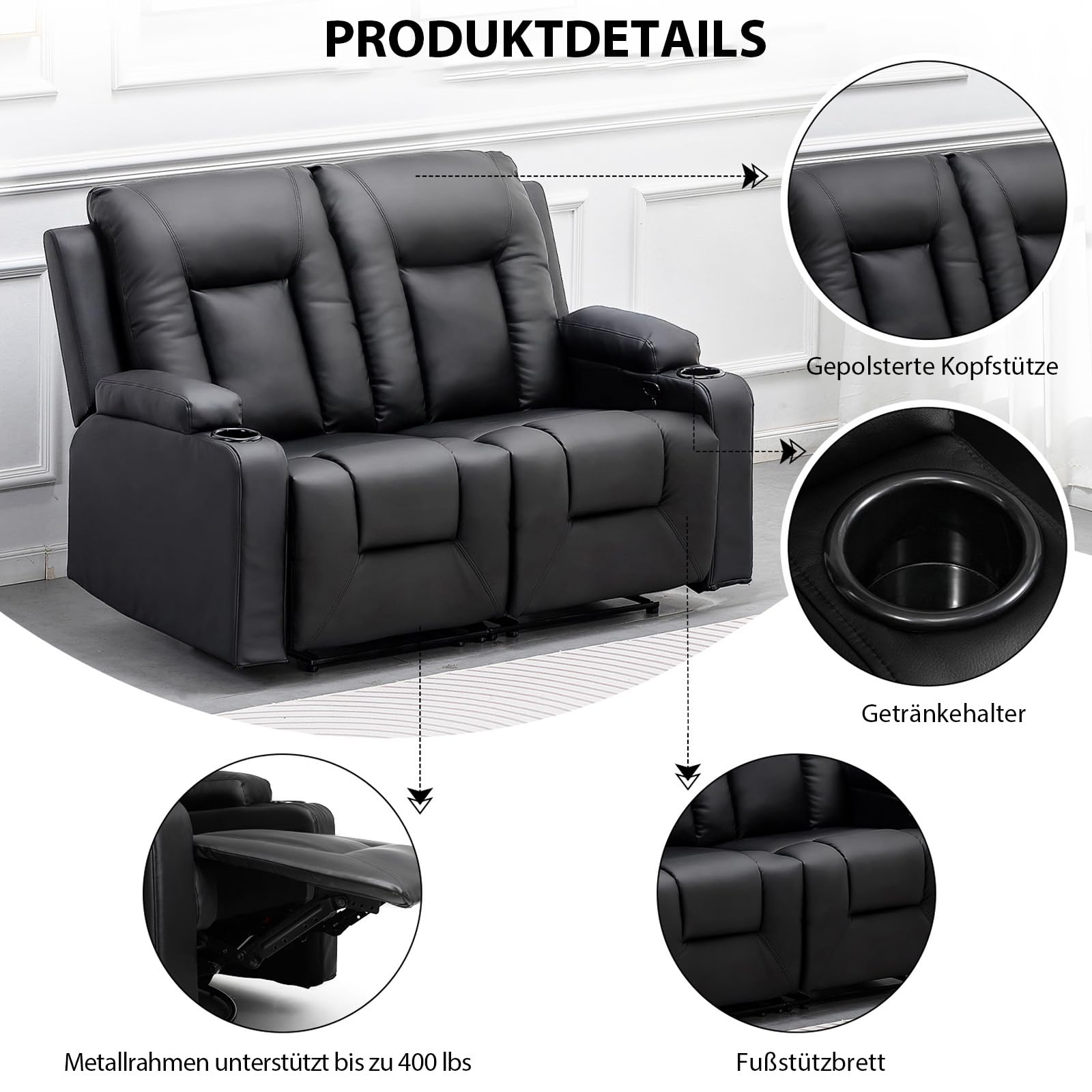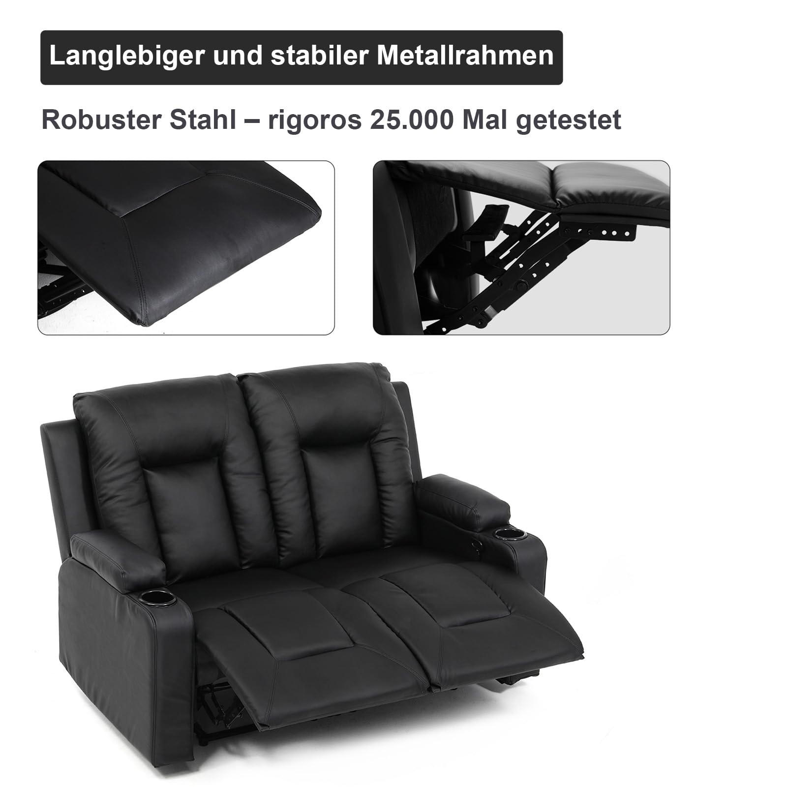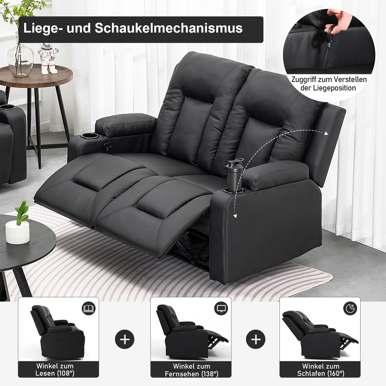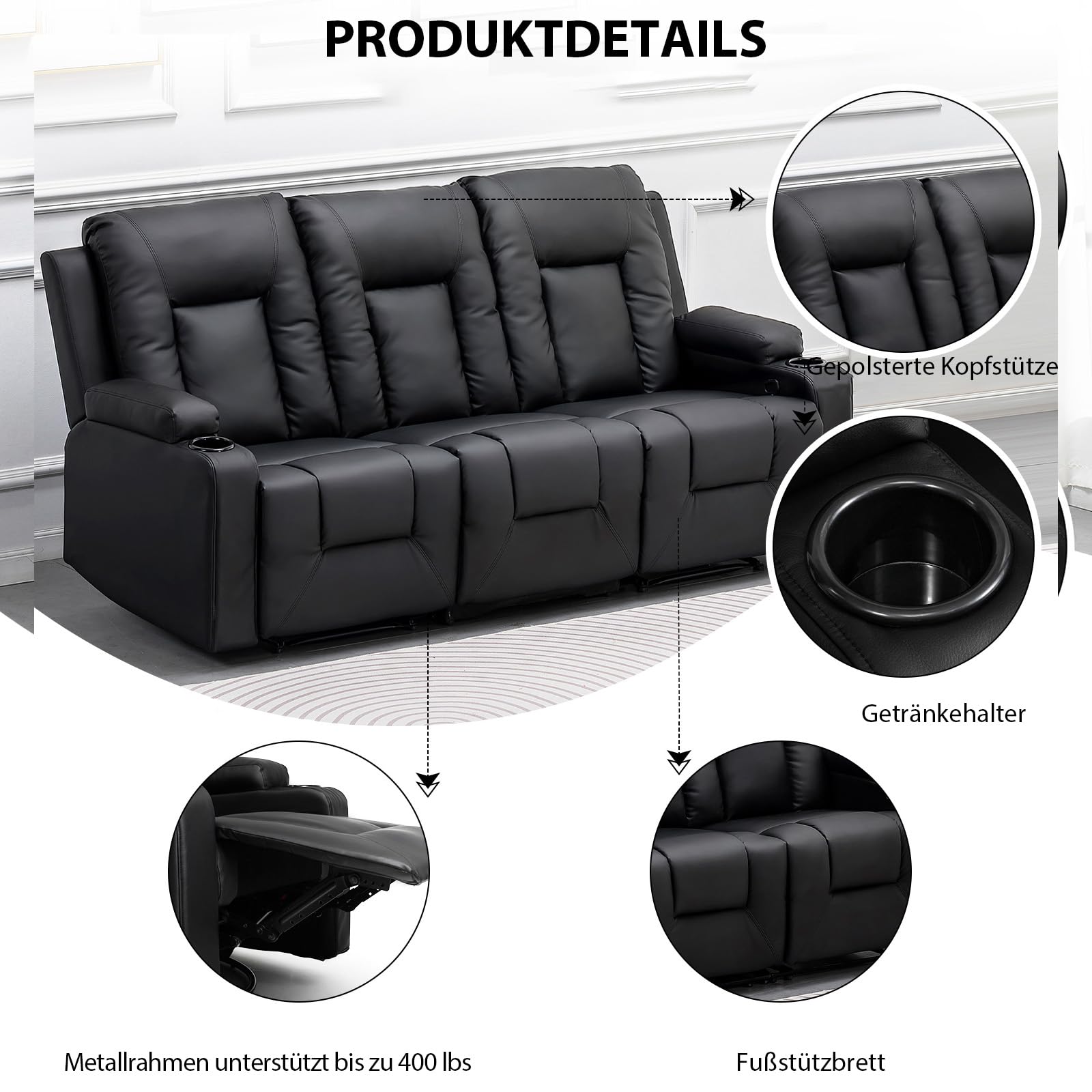 COMHOMA Relaxsessel-Set, Sofa, Sofa-Set aus Kunstleder, Fernsehsessel Ruhesessel Liegesessel mit Liege-Funktion Polstersessel Schlafsessel für Wohnzimmer Schlafzimmer Heimkino,Schwarz, 3+2+1