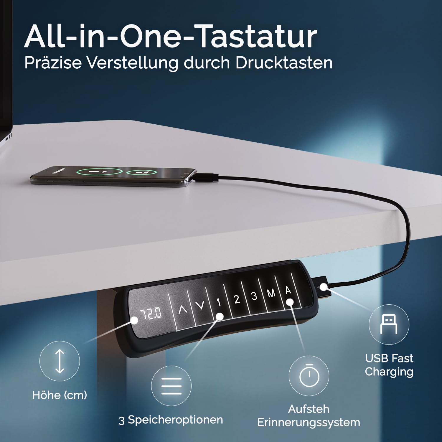 - FUNCTIONAL ALL-IN-ONE KEYBOARD - Three individually programmable height settings provide flexibility. The integrated reminder system in the corner desk can assist in designing active work phases.