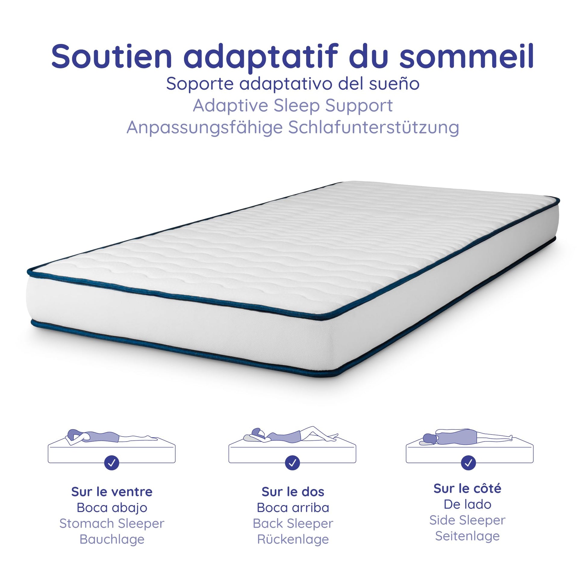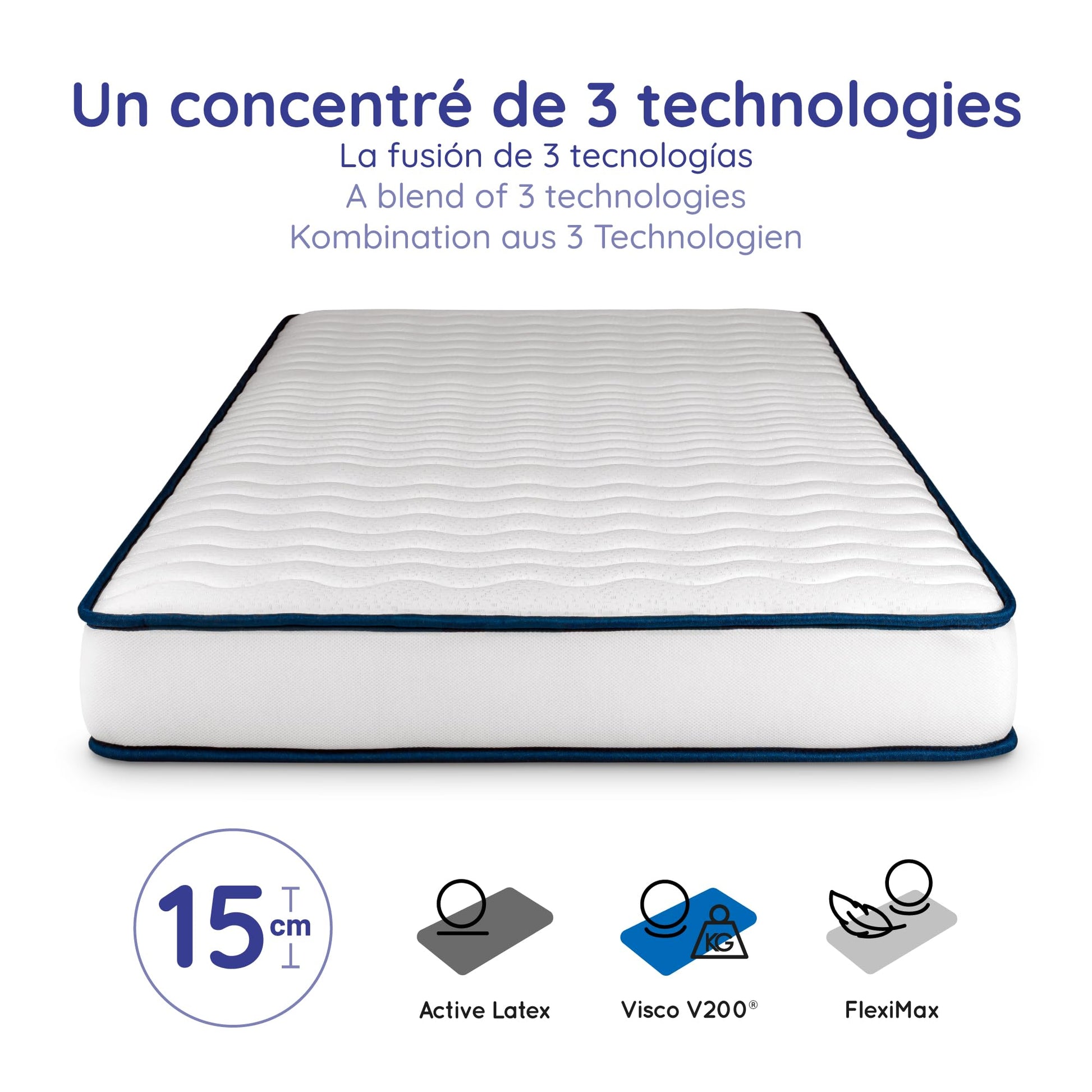 - INDEPENDENT OF SLEEP: Thanks to the high-density polyurethane foam core (23 kg/m³) and the bicell-shaped latex bands, this mattress offers exceptional lying independence so as not to be disturbed by your partner's movements.