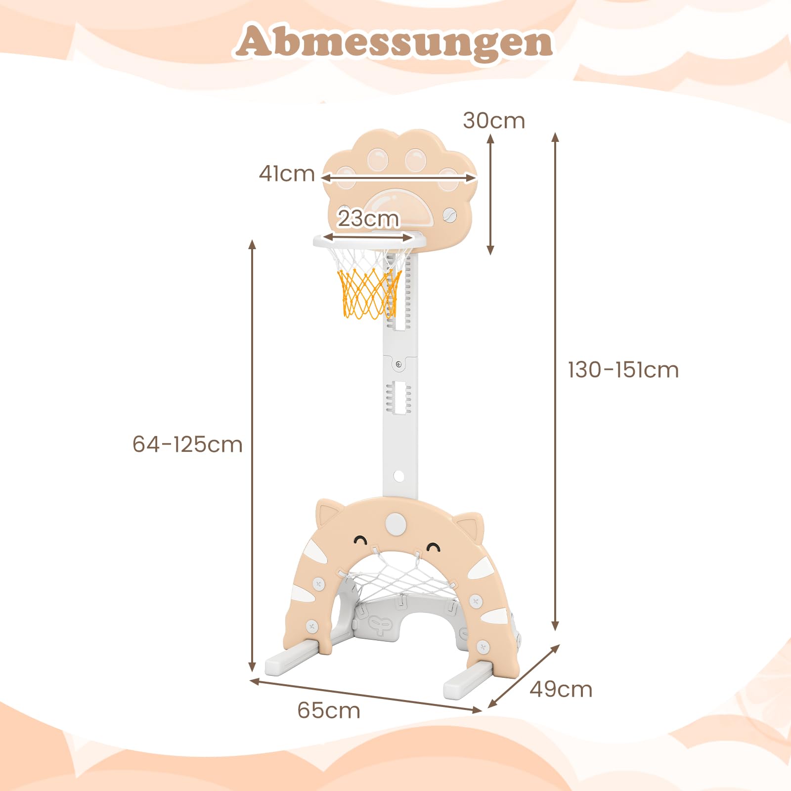 COSTWAY 3-in-1 Children's Basketball Hoop, Basketball Stand with Basketball & Football & Golf Game, Indoor Outdoor Basketball Game with Adjustable Height & Foldable Basket, for Children from 3 Years