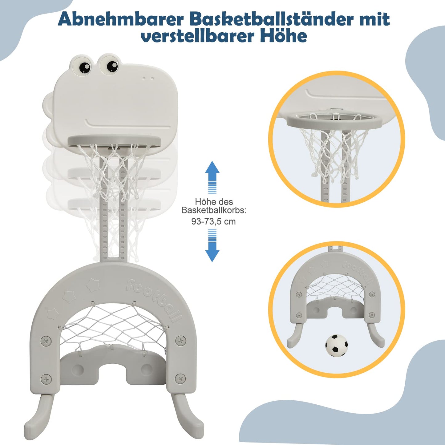 - 3 different ball games: The height of the basketball stand can be adjusted from 74 cm to 93 cm. If you want, it can also be easily removed and used separately. There is also a football goal and a golf hole where children can play football or golf. These different combinations make children more fun.