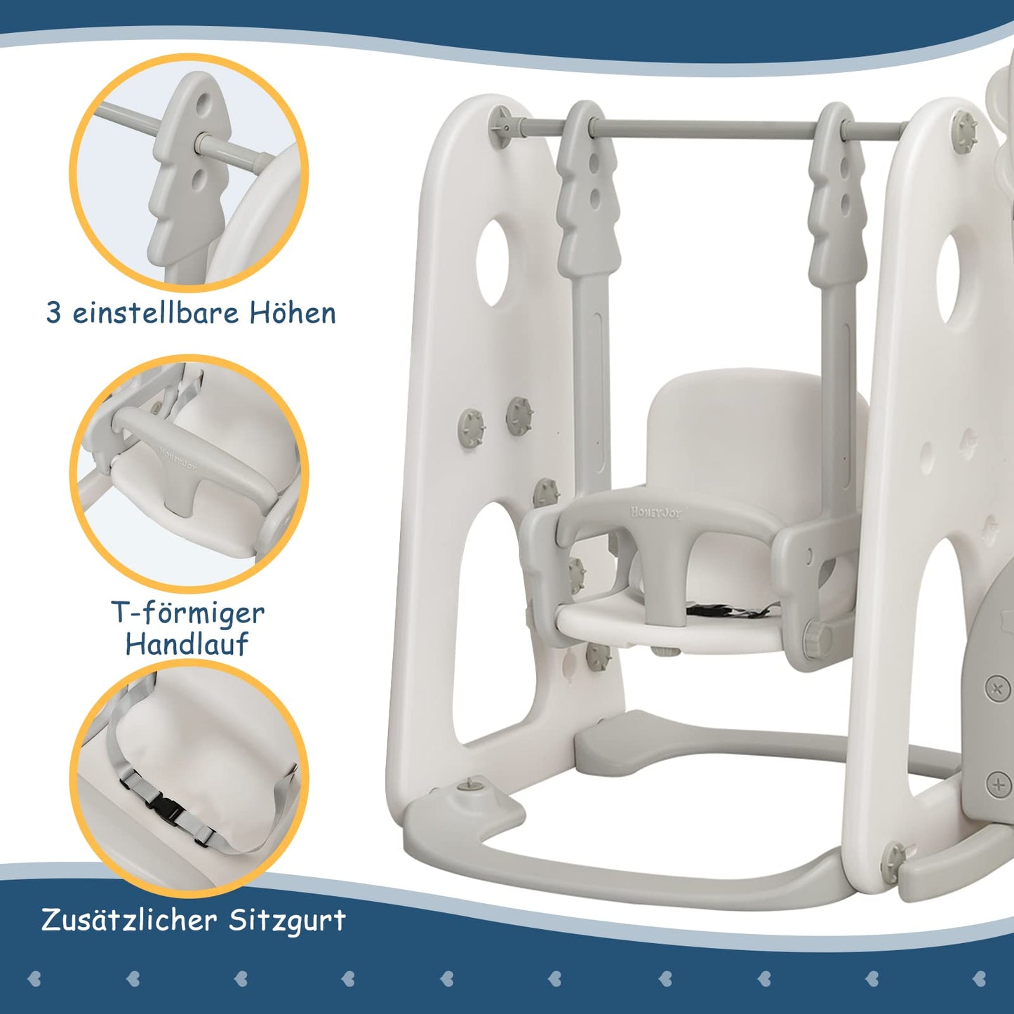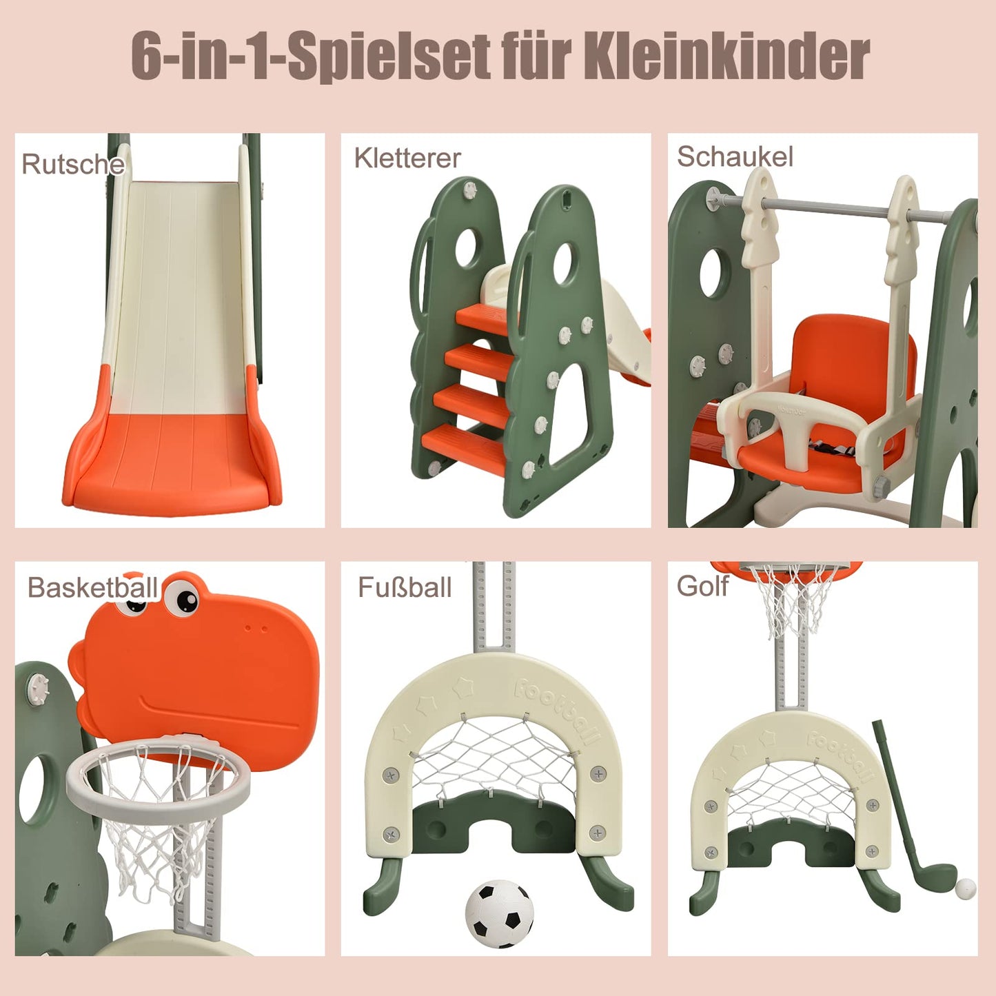 - 6-in-1 design for endless fun: Our climbing and swing set for toddlers includes 6 different activities, such as an adjustable basketball hoop, a smooth slide, a climbing ladder, a safety swing, a football goal and a golf hole. This versatile children's playground is full of opportunities for adventure and fun for your children and their friends when they can't go outside due to bad weather.