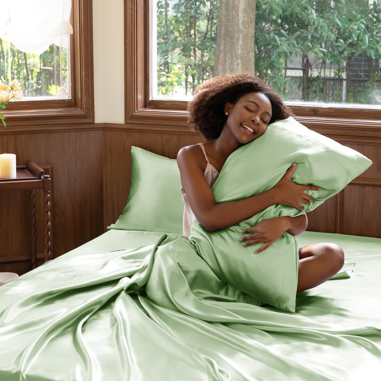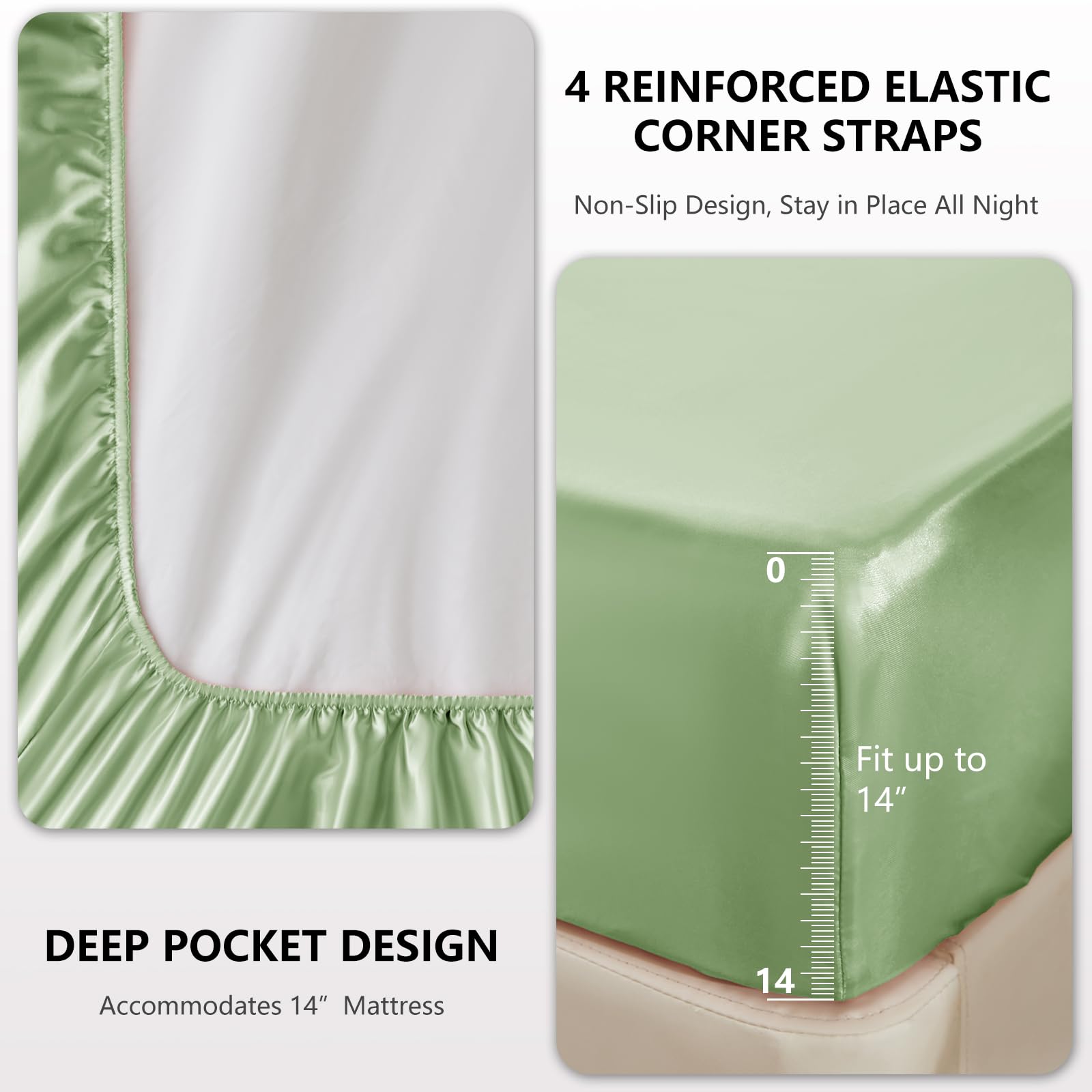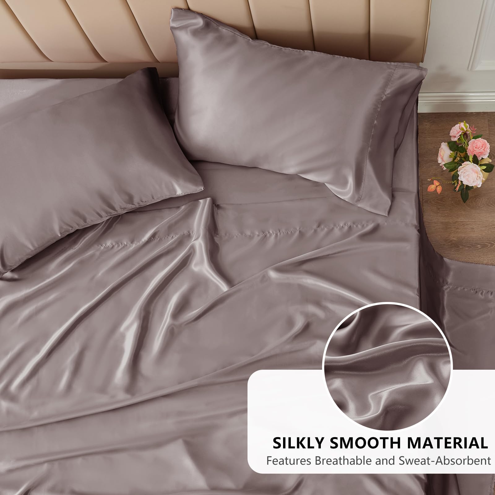 - Comfortable Fabric: Our silky satin bed sheet is made of premium polyester microfiber which is prized for its silky softness, lightweight and smooth, cool-to-the-touch feel. It also features elegant color and luxurious gloss, give your bed a perfect, decorative look with this fresh and stylish 4 pieces satin sheets
