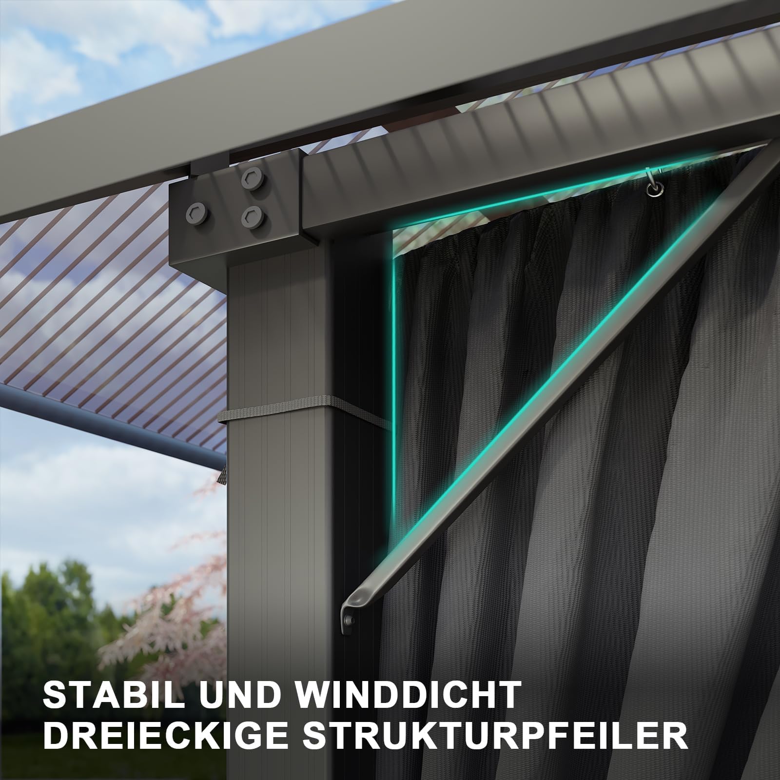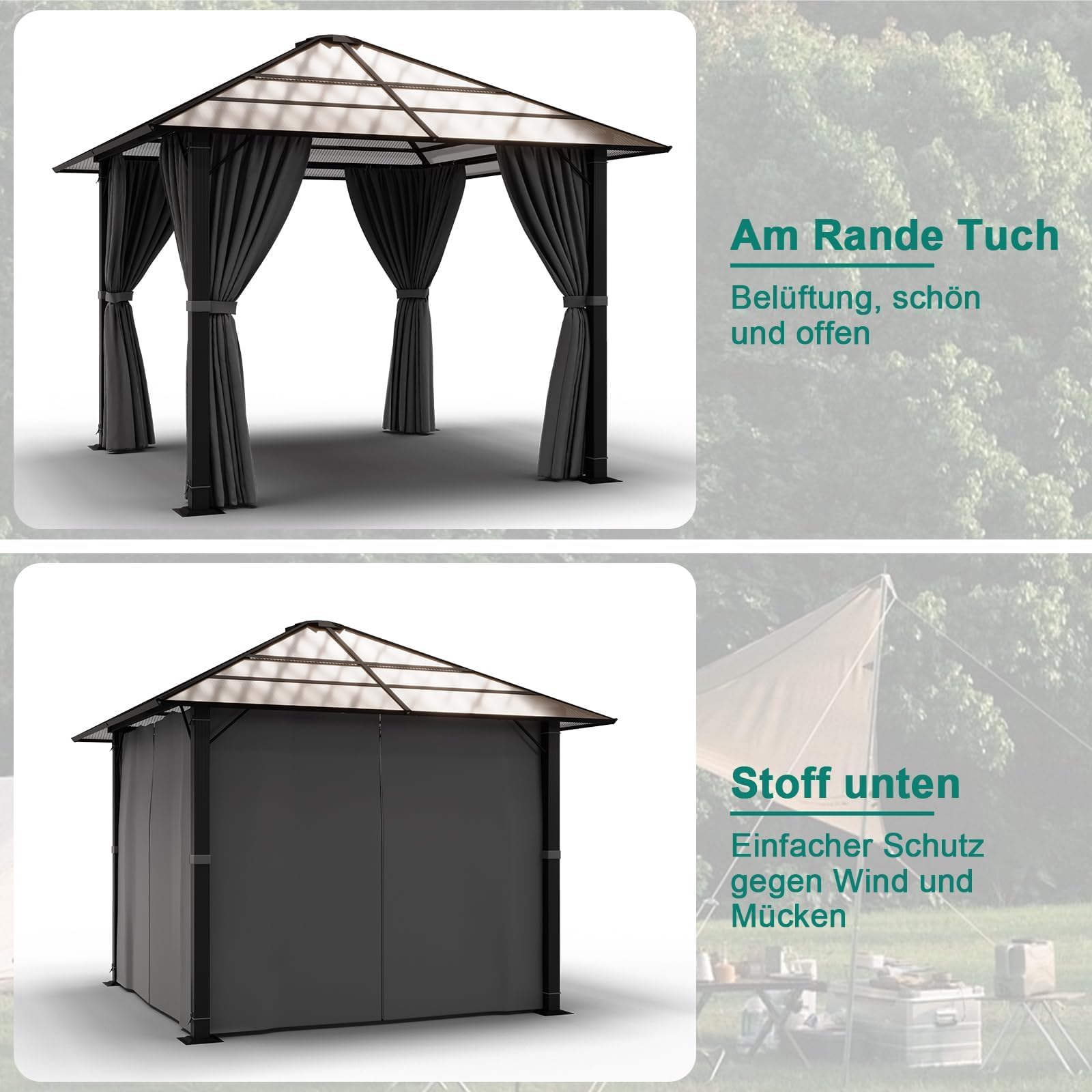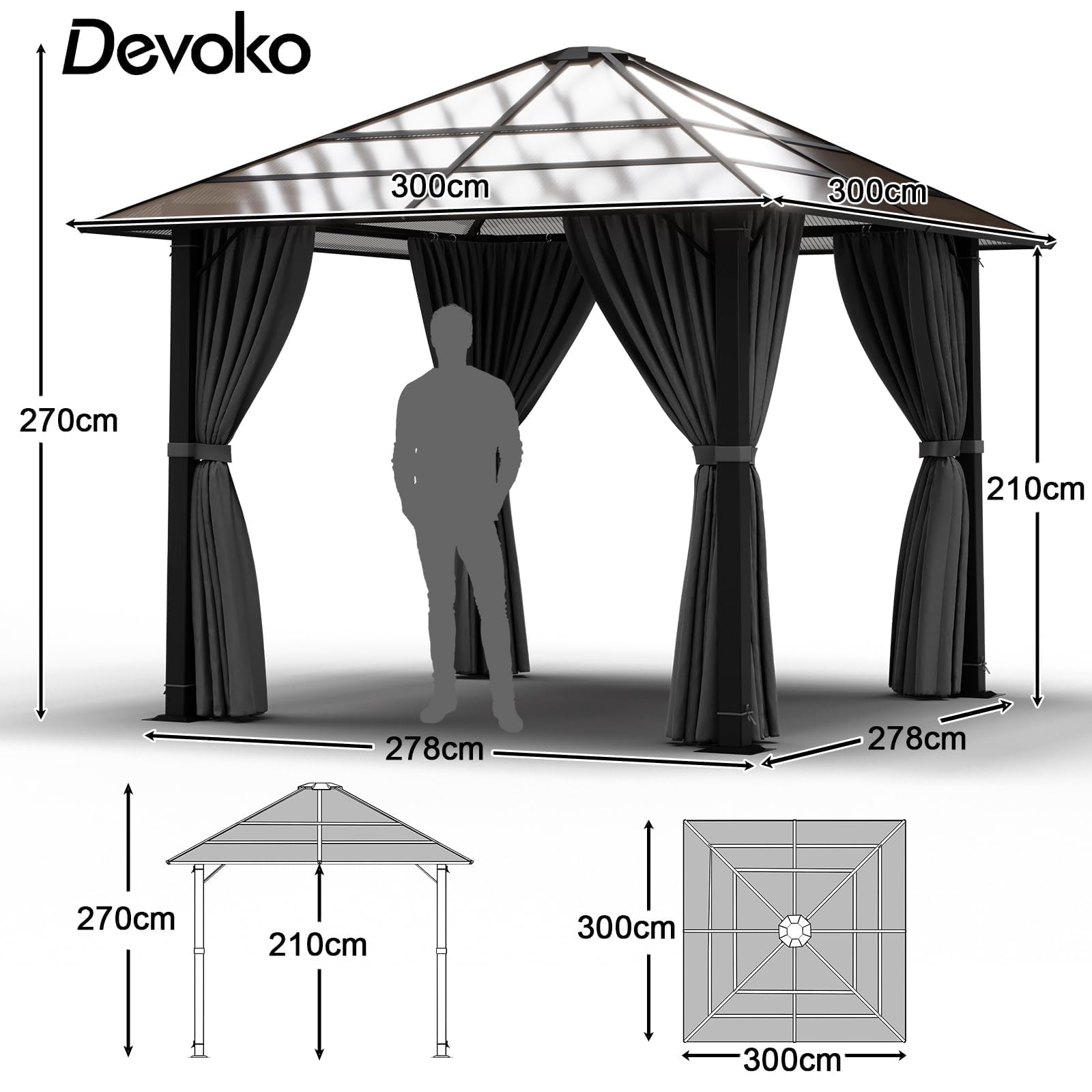 - Durable: Devoko gazebos are made of aluminium alloy, which is rust-proof and particularly durable. The thickness of the pipes has been optimised for lower maintenance costs with long-term use. This guarantees a long service life outdoors in changing weather conditions.