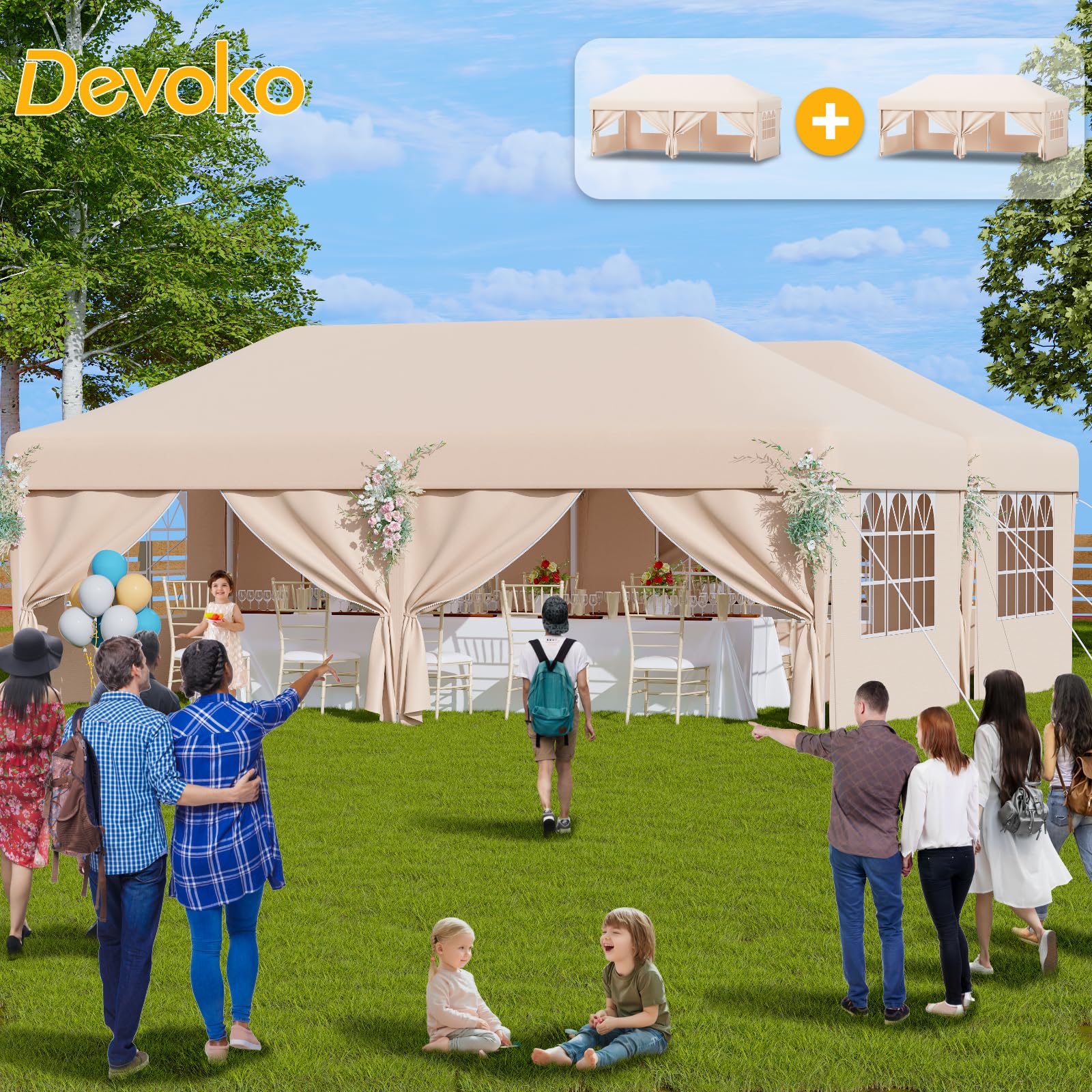 - Suitable for multiple scenarios: The Devoko camping pavilion can be used as a quick shelter for events such as family reunions, outdoor bars and flea markets and is also ideal for birthday parties or company events!