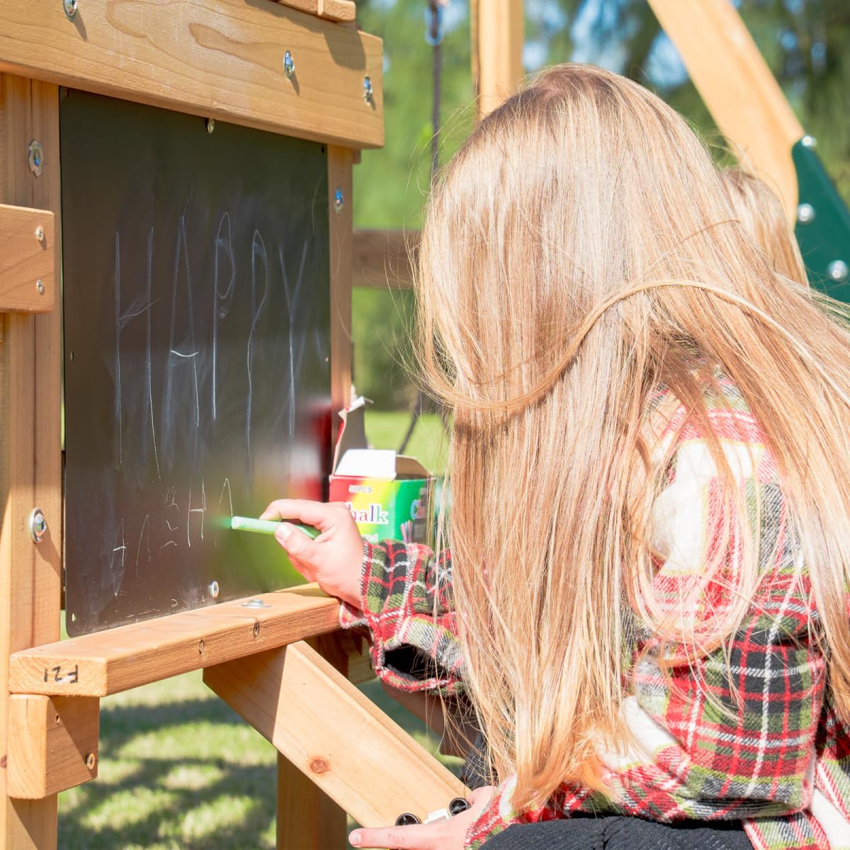 - 【VIELSEITIGKEIT】: Enthält 2 Schaukeln; Wellenrutsche; Picknicktisch; Kletterwand; Teleskop zum Entdecken; Tafel für kreatives Spielen; aktives Spielen und Erkunden in mehreren Spielbereichen (3,40 x 2,88 m)