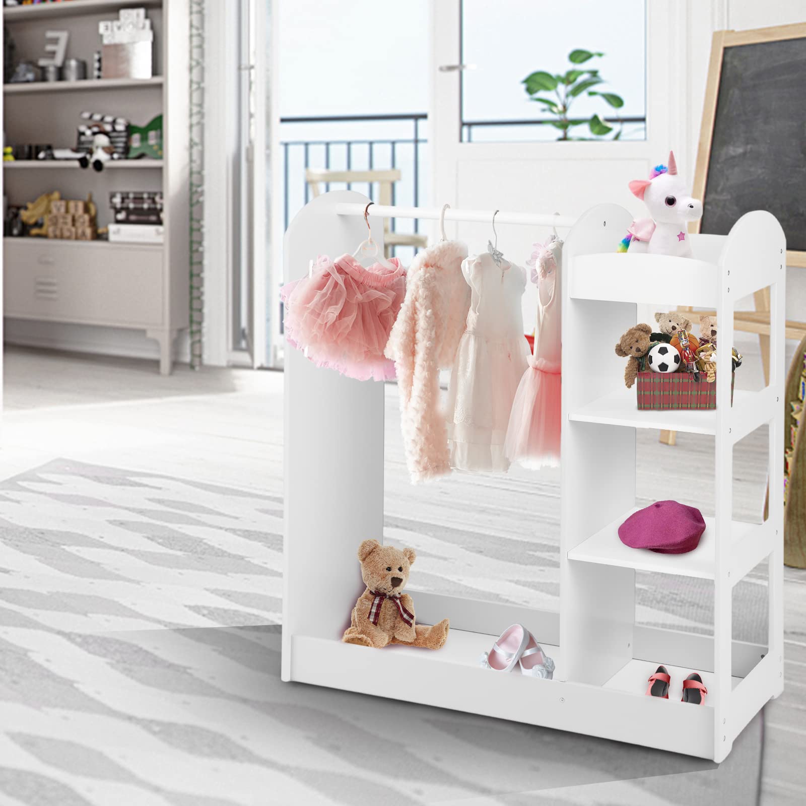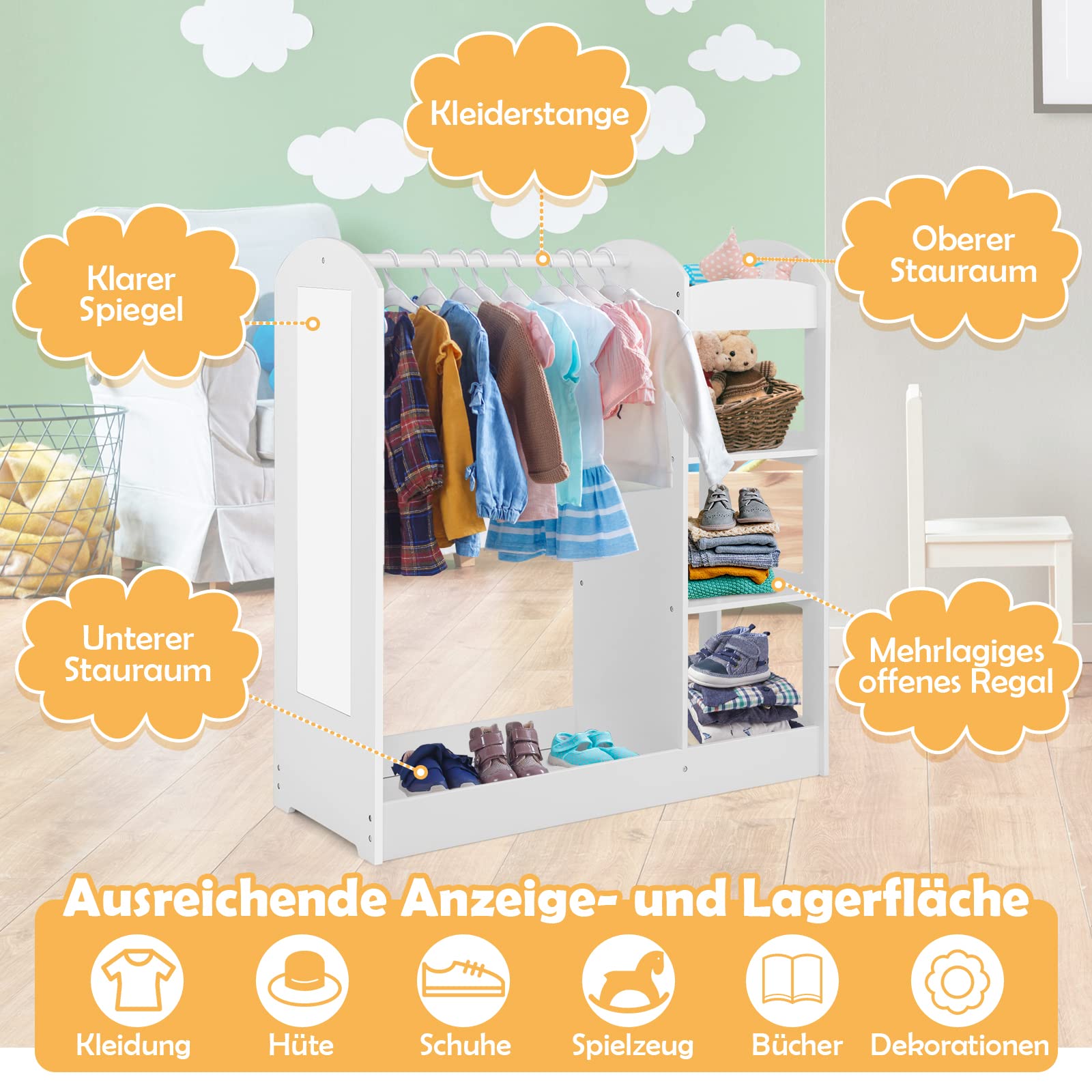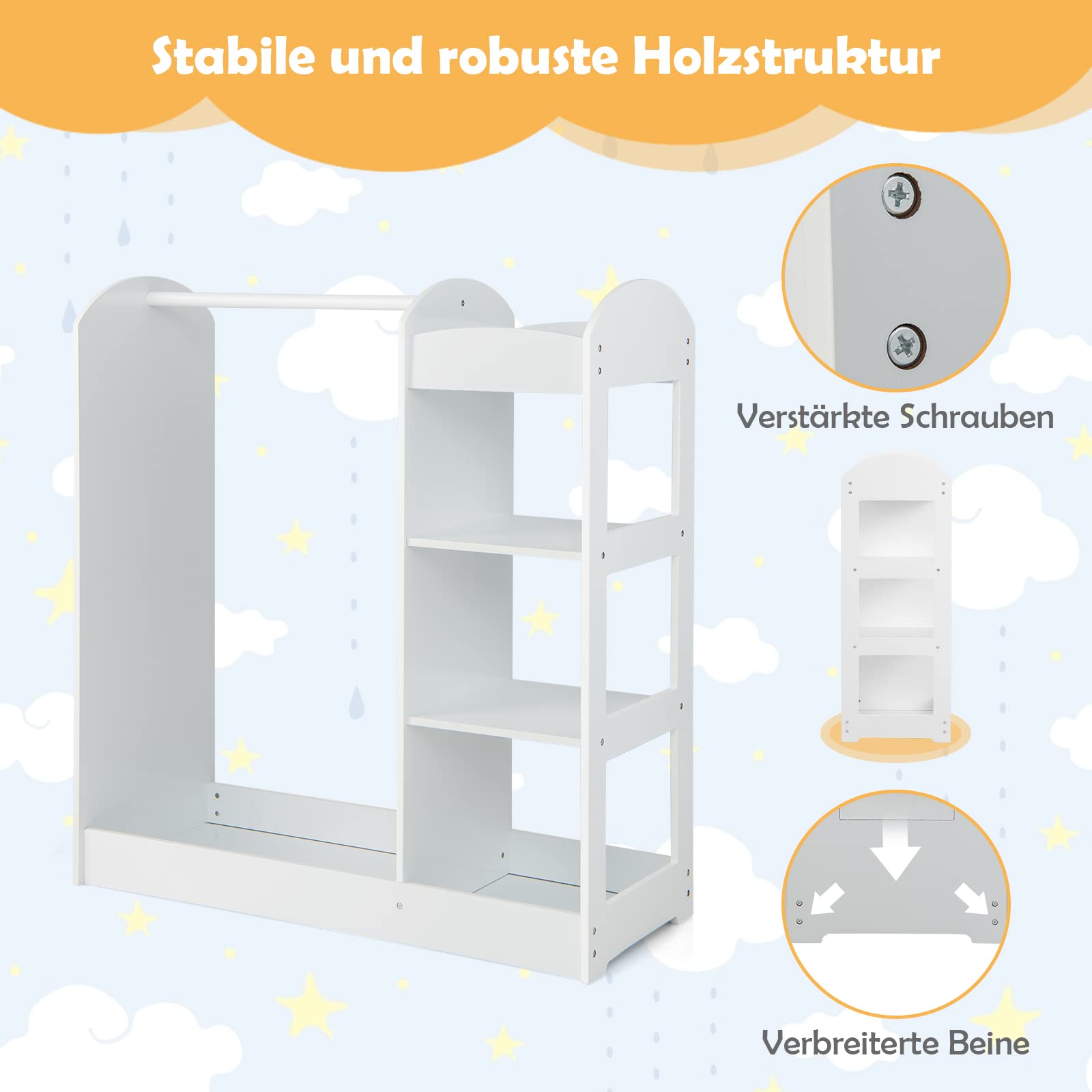 DREAMADE Children's Wardrobe with Mirror and Clothes Rail, Children's Wardrobe with 4 Open Shelves, Children's Clothes Rack for Children's Room, 93.5 x 38 x 100 cm (White)