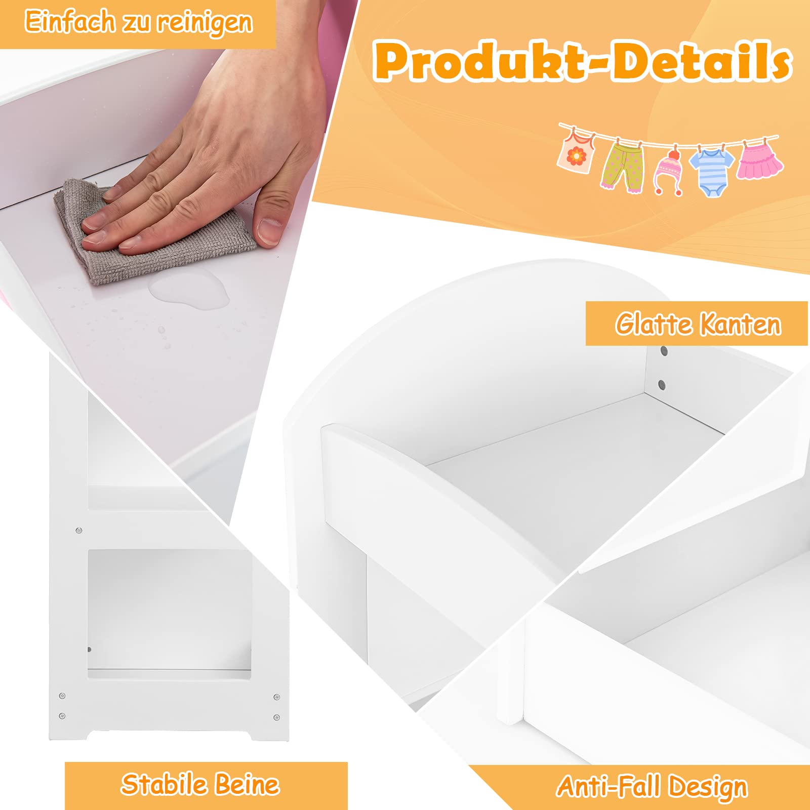 It has 4 shelves and 1 clothes rail, which provides plenty of space for children's clothes, shoes, toys, hats and other things and allows children to develop good habits of tidying up. In addition, children can see themselves in the mirror on the side, making it easy for them to change their clothes. The wardrobe is made of high-quality MDF and pine wood, which makes the wardrobe stable and durable, and the rounded edges can prevent injury.