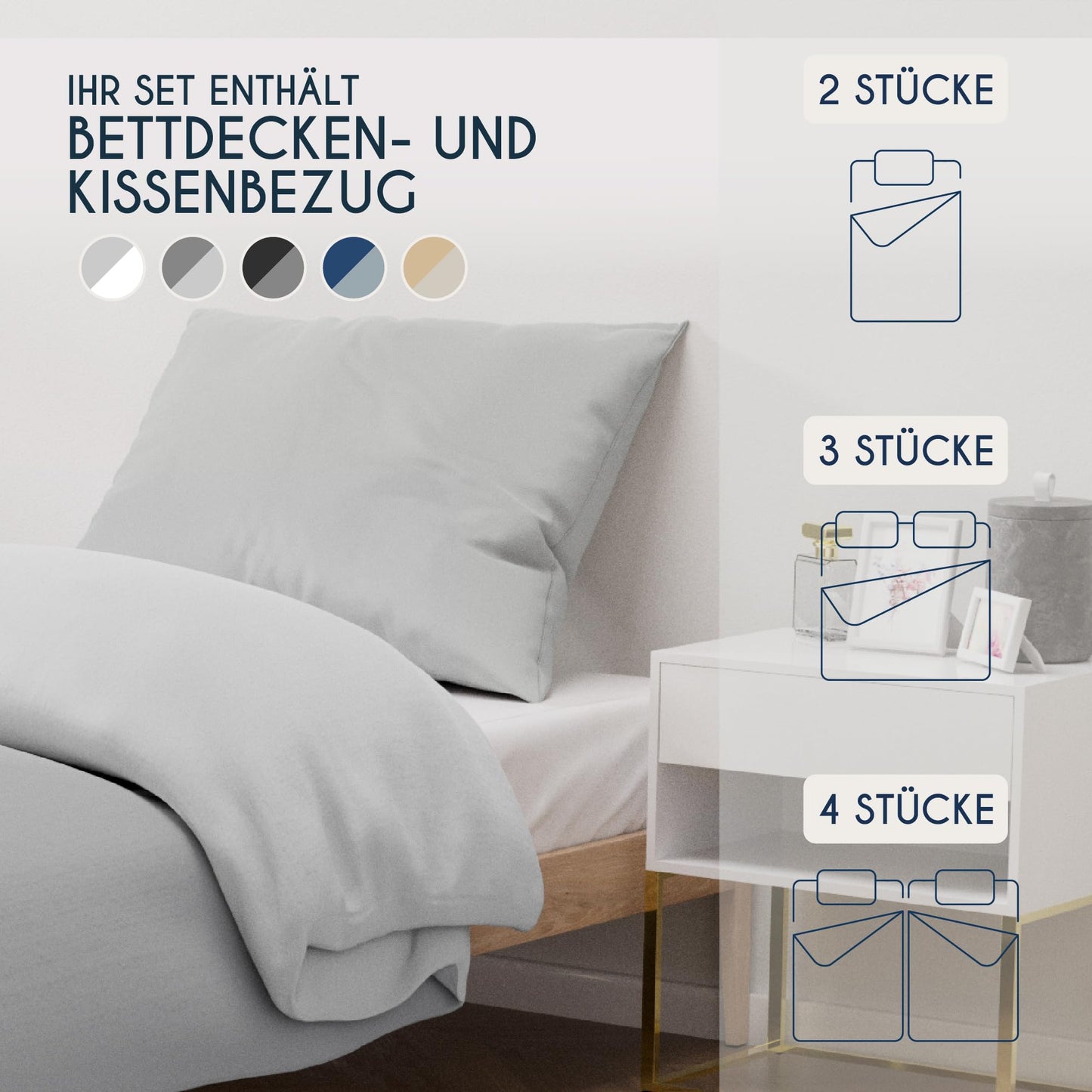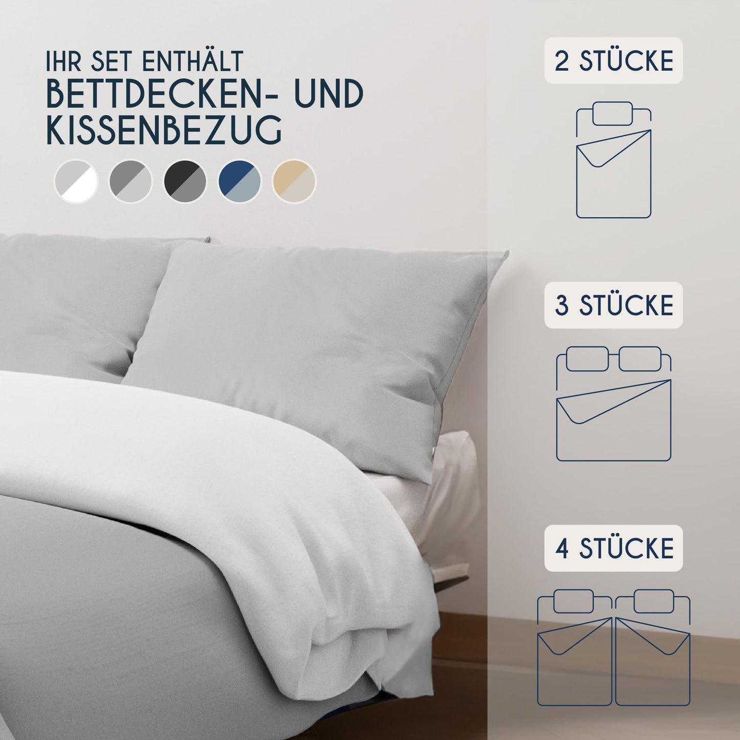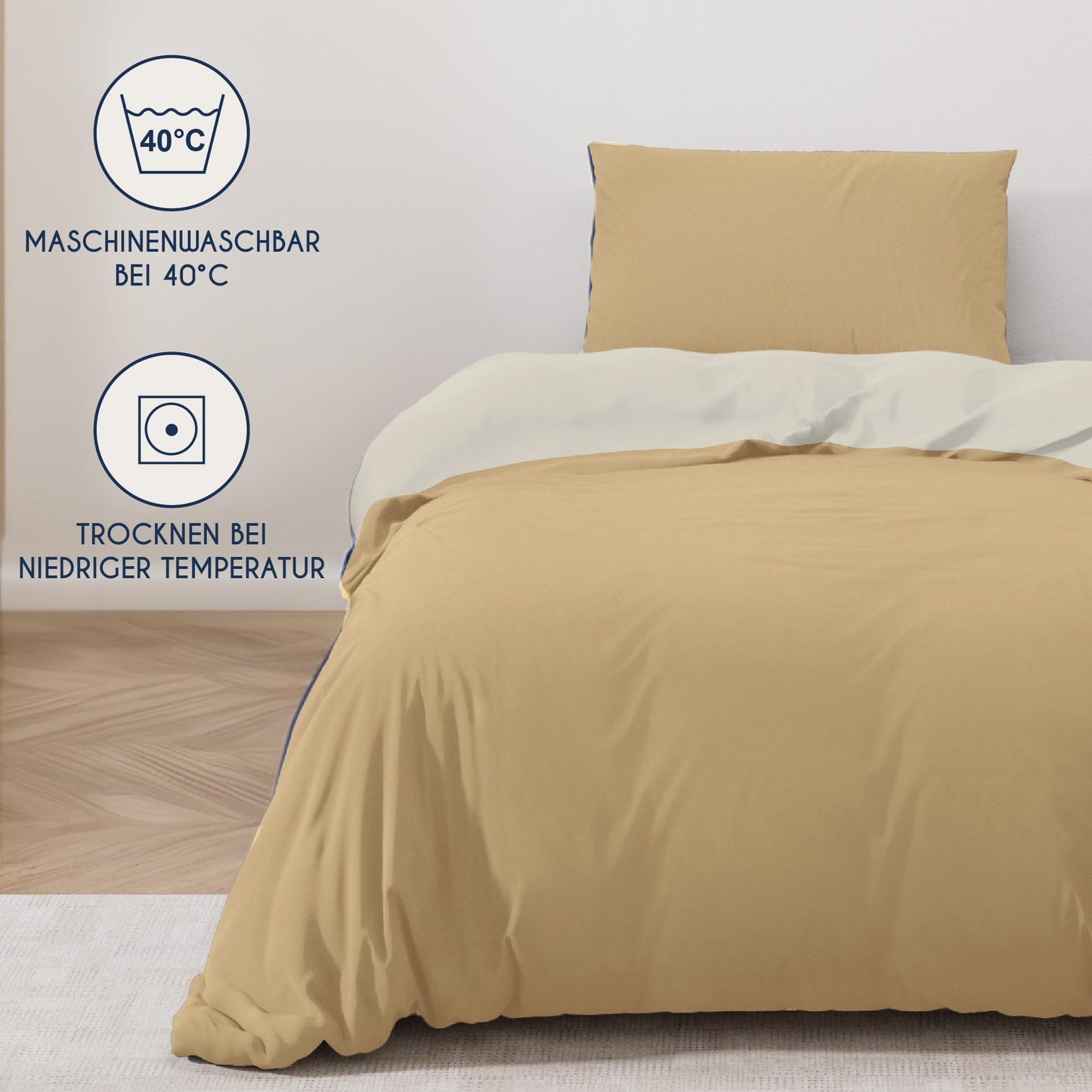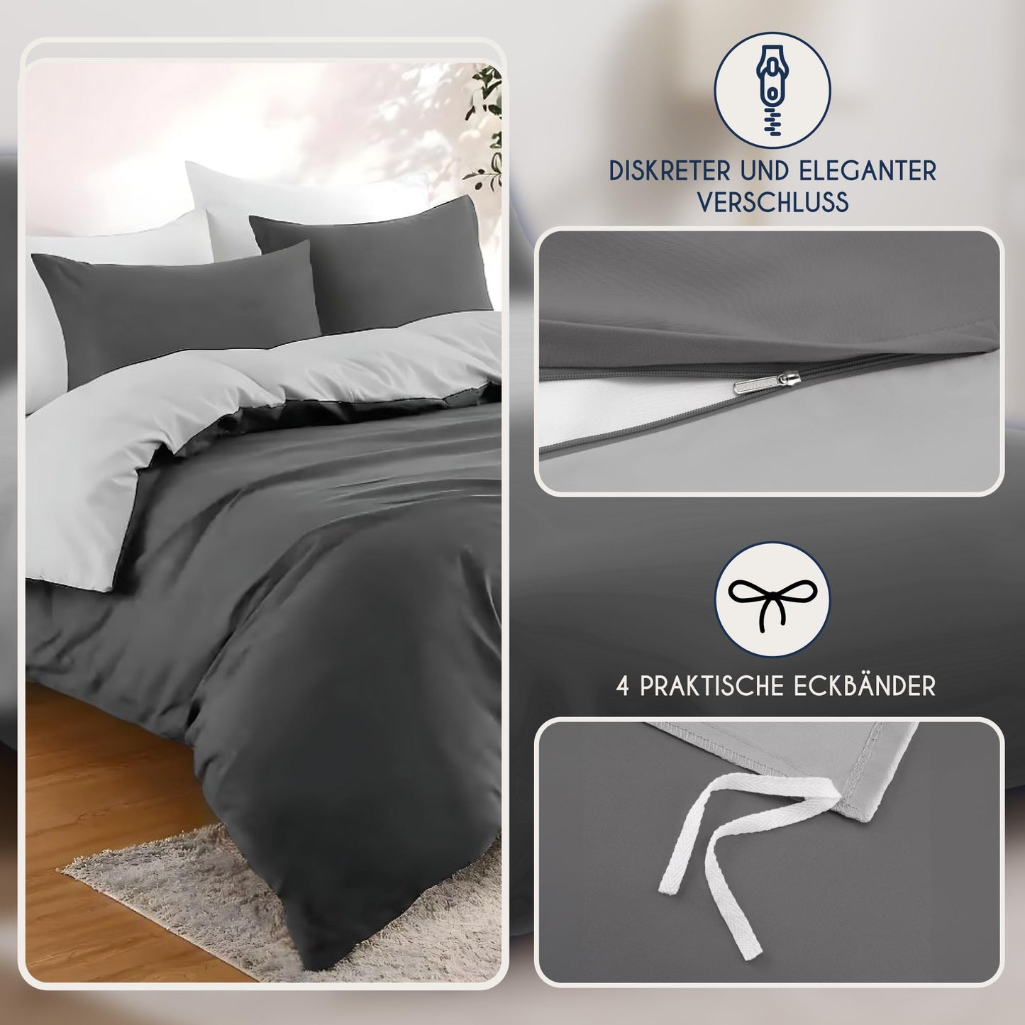 - REVERSIBLE DESIGN WITH AESTHETIC APPEARANCE: Benefit from the flexibility of a reversible design that multiplies your design possibilities. So you can easily change the ambience of your bedroom and get two elegant style variations with just one purchase. Tone-on-tone zips and practical ties at each corner not only guarantee a clear look, but also prevent the duvet from slipping - for an undisturbed night's sleep.
