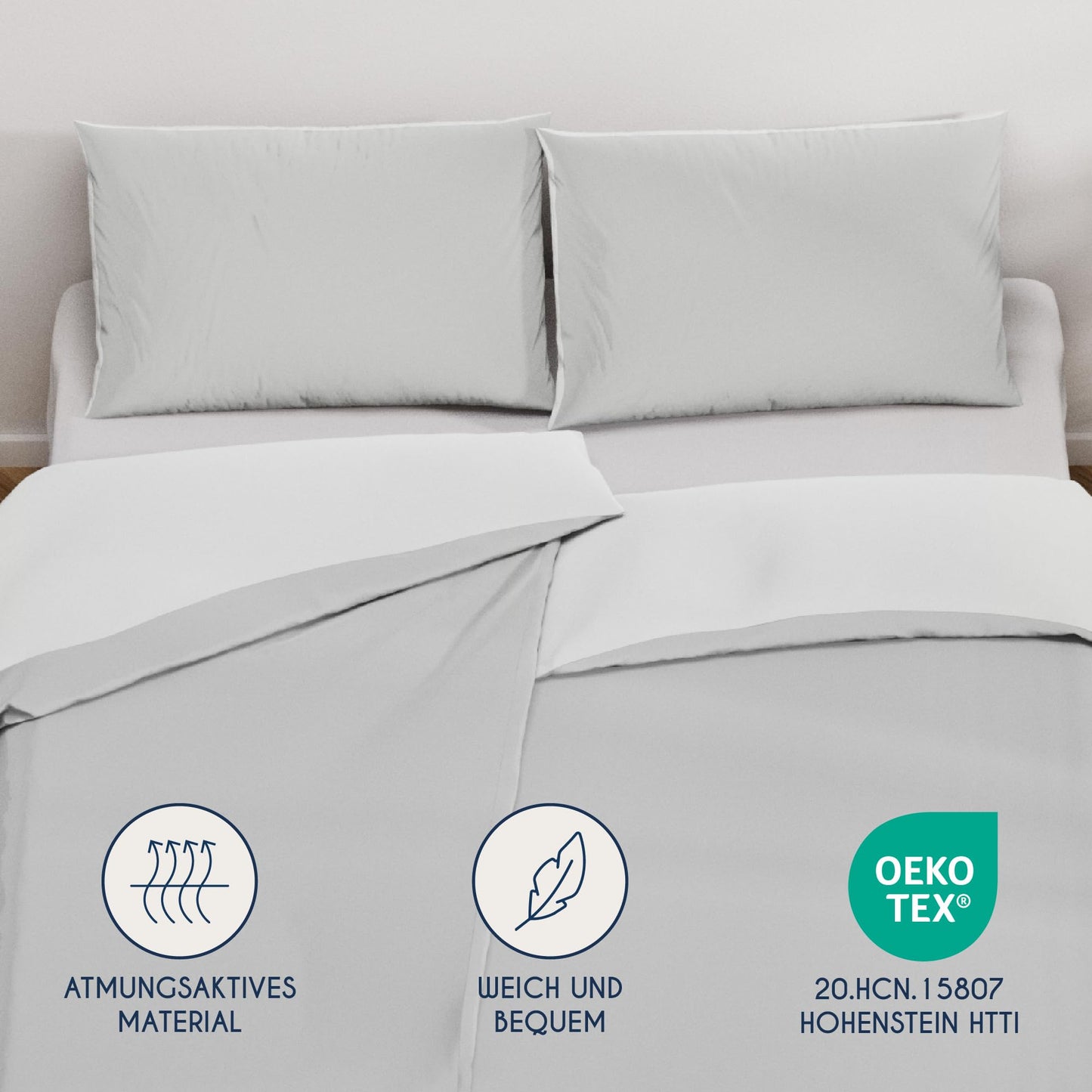 Dreamzie - Bed Linen Set 200 x 200 cm with 2 Pillowcases 80 x 80 cm Light Grey/White - 1 Duvet Cover 200 x 200 cm Made of 100% Microfibre - Certified No Chemicals (Oeko Tex)