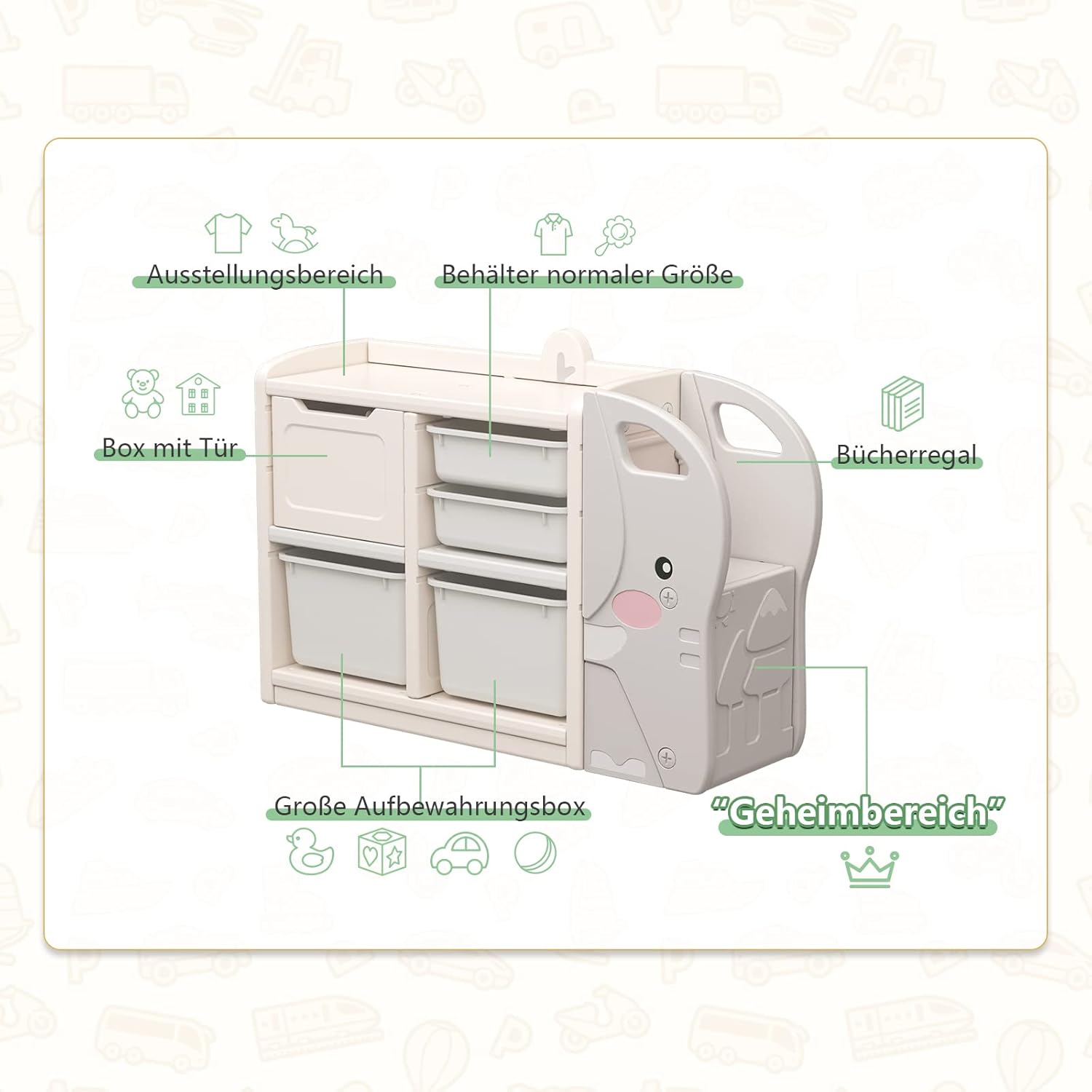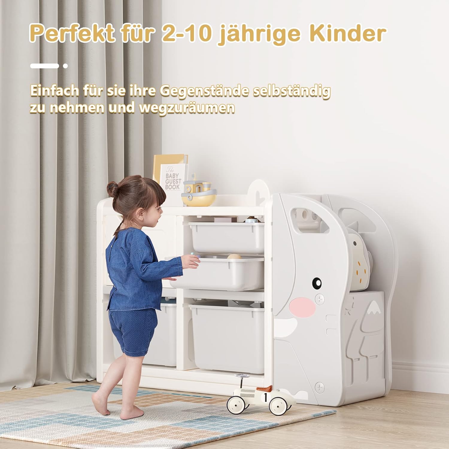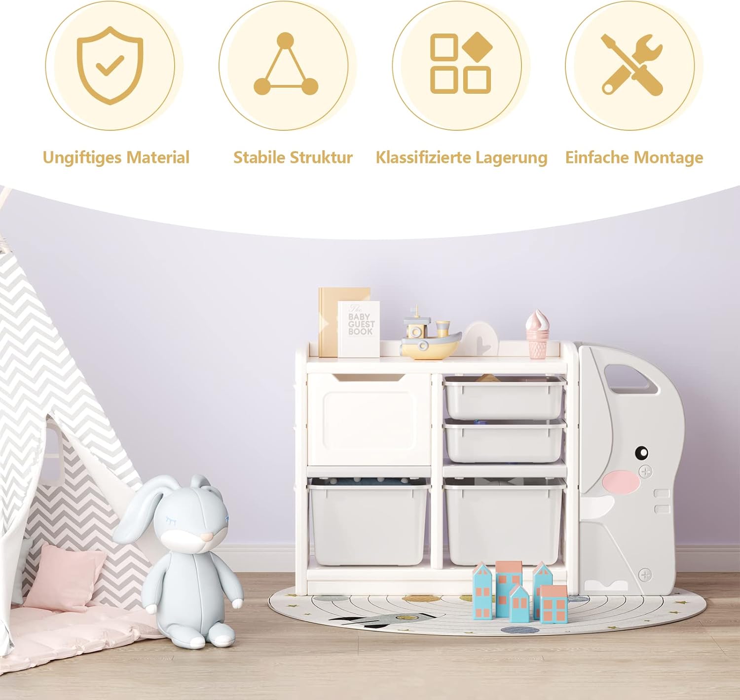- DURABLE & SAFE & STABLE: Made from non-toxic and odourless HDPE panels, this multifunctional children's shelf can accompany the whole childhood of the little ones. With an outstanding structure, this toy cabinet can withstand a maximum of 20 kg. The rounded corners and the storage boxes without pointed edges protect children from bumps and bruises.