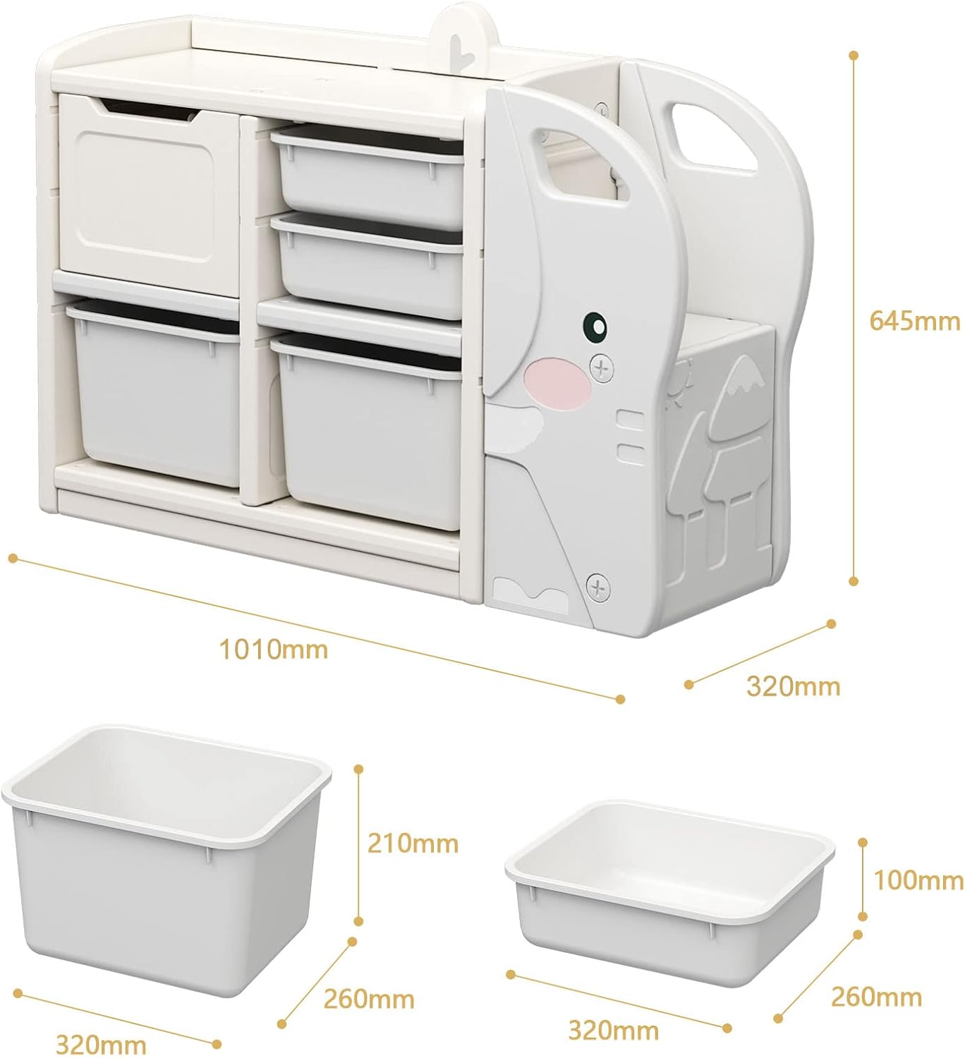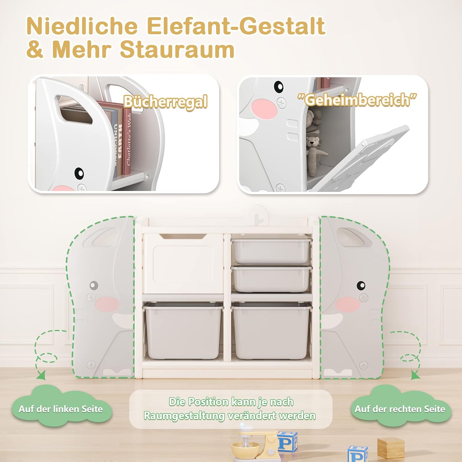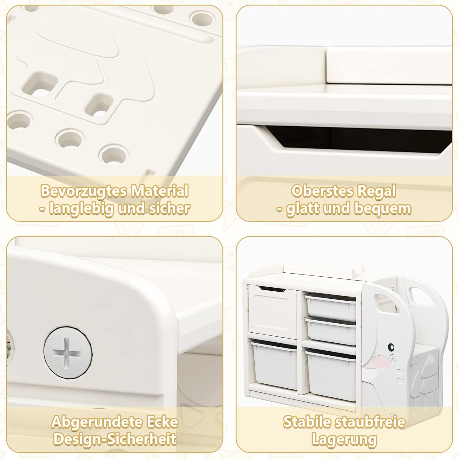 - DURABLE & SAFE & STABLE: Made from non-toxic and odourless HDPE panels, this multifunctional children's shelf can accompany the whole childhood of the little ones. With an outstanding structure, this toy cabinet can withstand a maximum of 20 kg. The rounded corners and the storage boxes without pointed edges protect children from bumps and bruises.