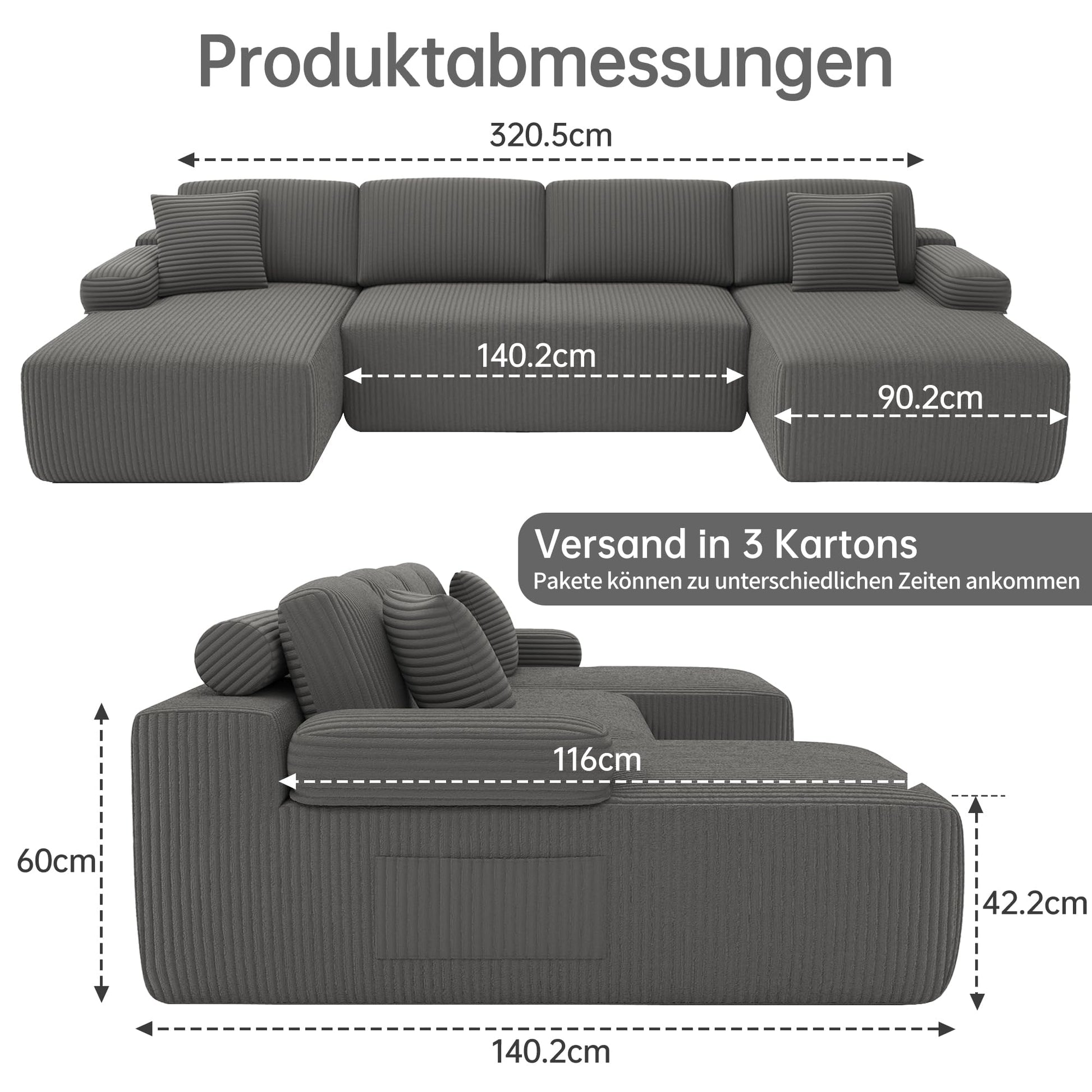 - 【EFFORTLESS SETUP】Unpack and fluff up immediately - just shake the cushions to restore their shape. The modular design naturally retains its shape within about 72 hours. Product dimensions in U shape: 126.2" L x 55.2" W x 33" H. Compact shipping boxes (2 boxes) ensure hassle-free delivery.