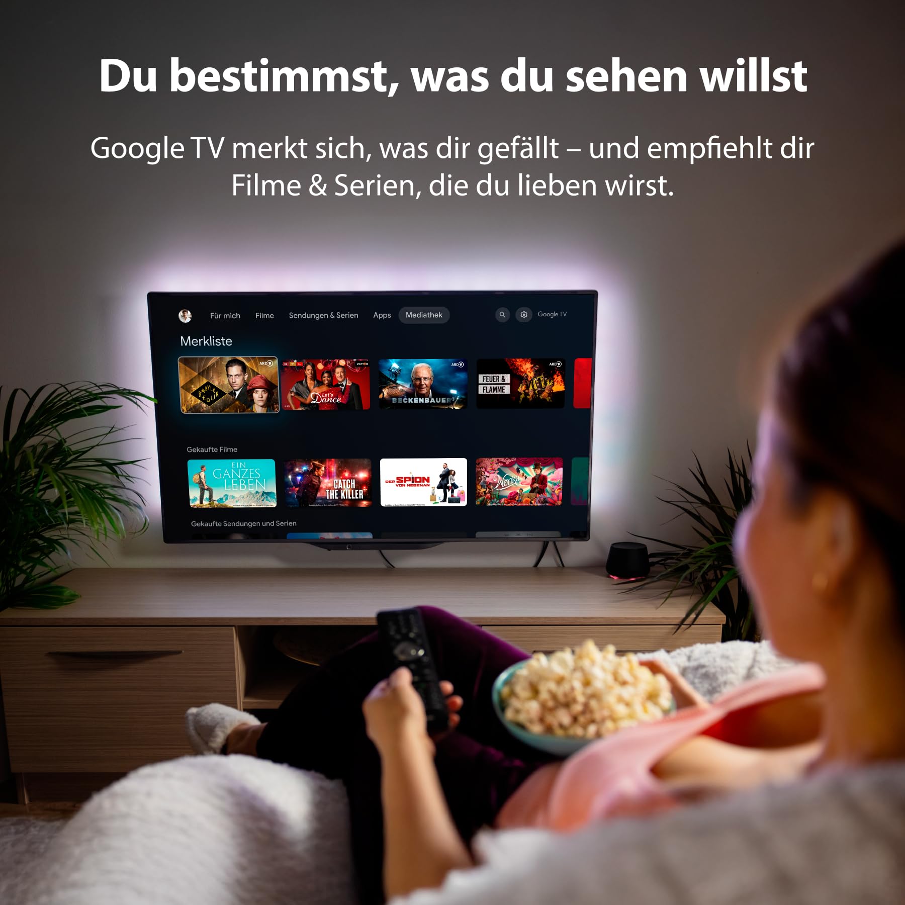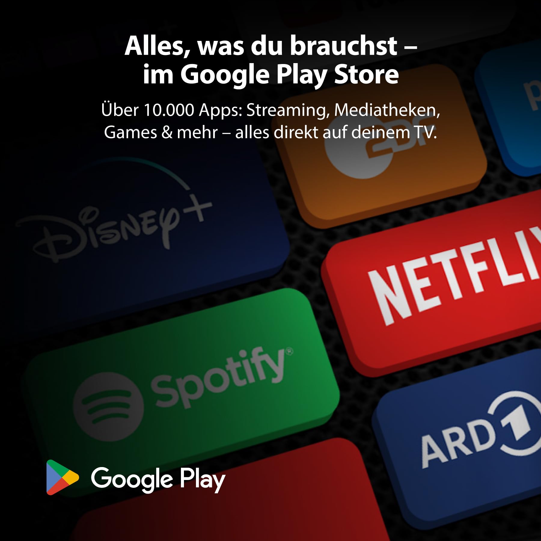 - Smart TV with Google TV - Direct access to Netflix, Prime Video, YouTube & more - more apps like WOW, JOYN or RTL+ can be easily installed via the Google Play Store.