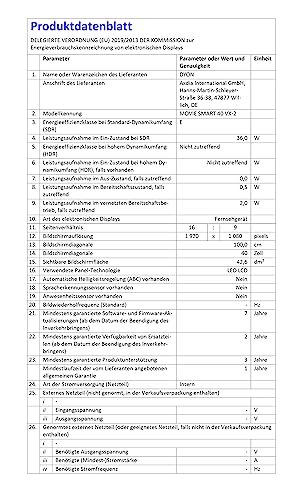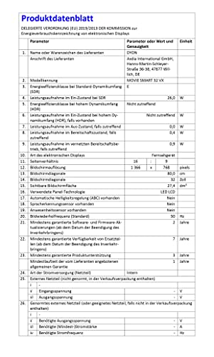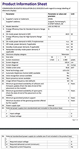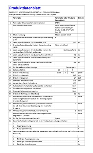 | Included components | DYON Movie Smart 43 VX, instructions, remote control (including batteries) |
