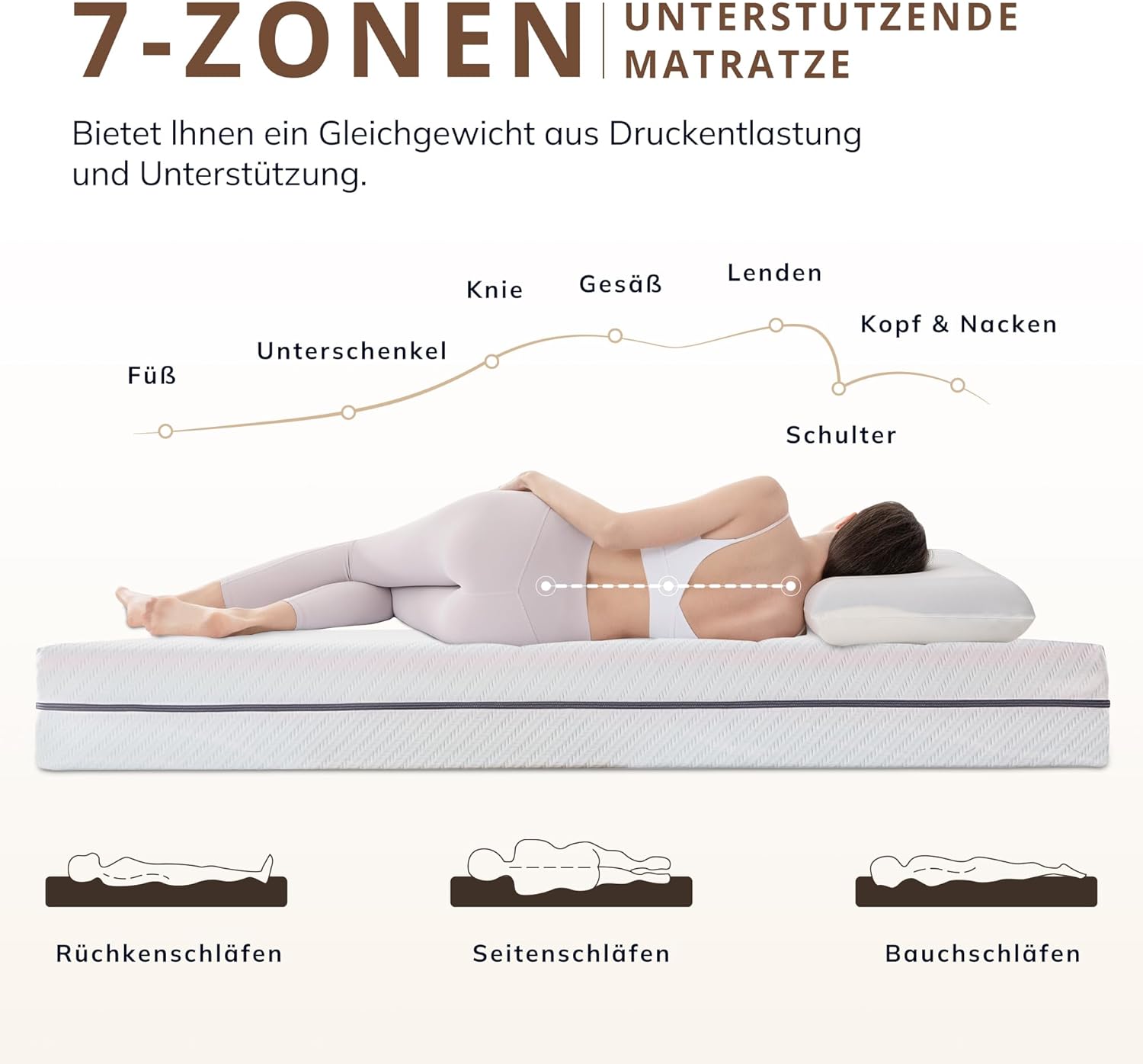 - 7-ZONE ERGONOMIC POCKET SPRING SYSTEM The 7-zone spring core is ergonomically precisely constructed and provides targeted support for head, shoulders, waist and hips. The differentiated spring strength effectively reduces pressure on the shoulders and hips of side sleepers while the medium-firm hardness provides balanced comfort - ideal for those who prefer a supportive yet soft sleeping surface.
