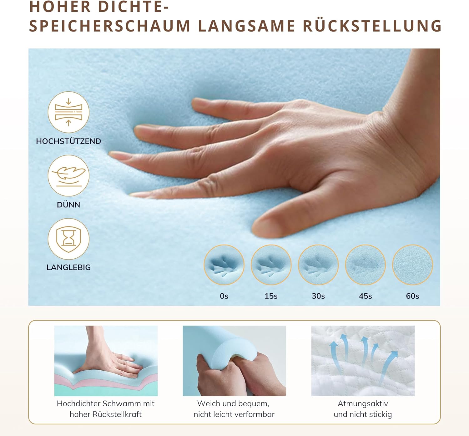 - 3D Honeycomb Stitching: The 3D honeycomb quilting distributes body weight evenly and increases the contact area by 30% for a floating pressure-free sleeping experience. The breathable structure promotes air circulation combined with moisture-regulating fabric that improves humidity regulation by 50%. The removable cover is machine washable at 60°C.