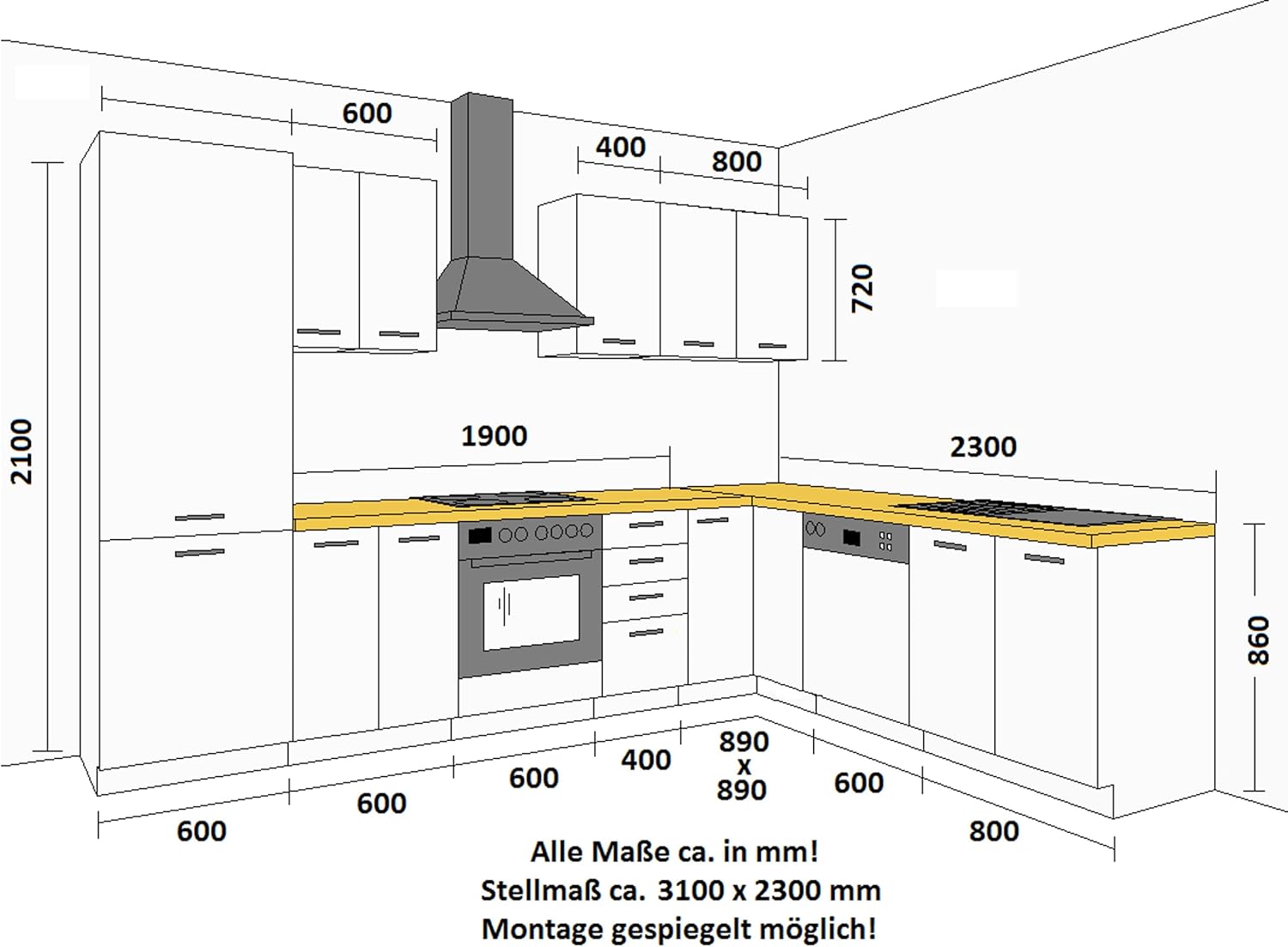 EKO Corner Kitchen Unit 310 x 230 cm White