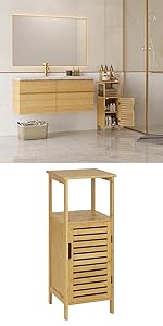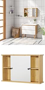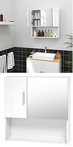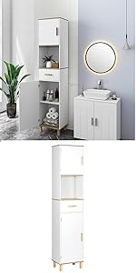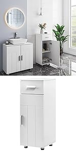 - The cabinet is made with premium MDF panels (quality class E1) and evenly painted. That's why it is moisture and rot resistant. In addition, the surface feels smooth and comfortable. An ideal choice for bathroom or kitchen.