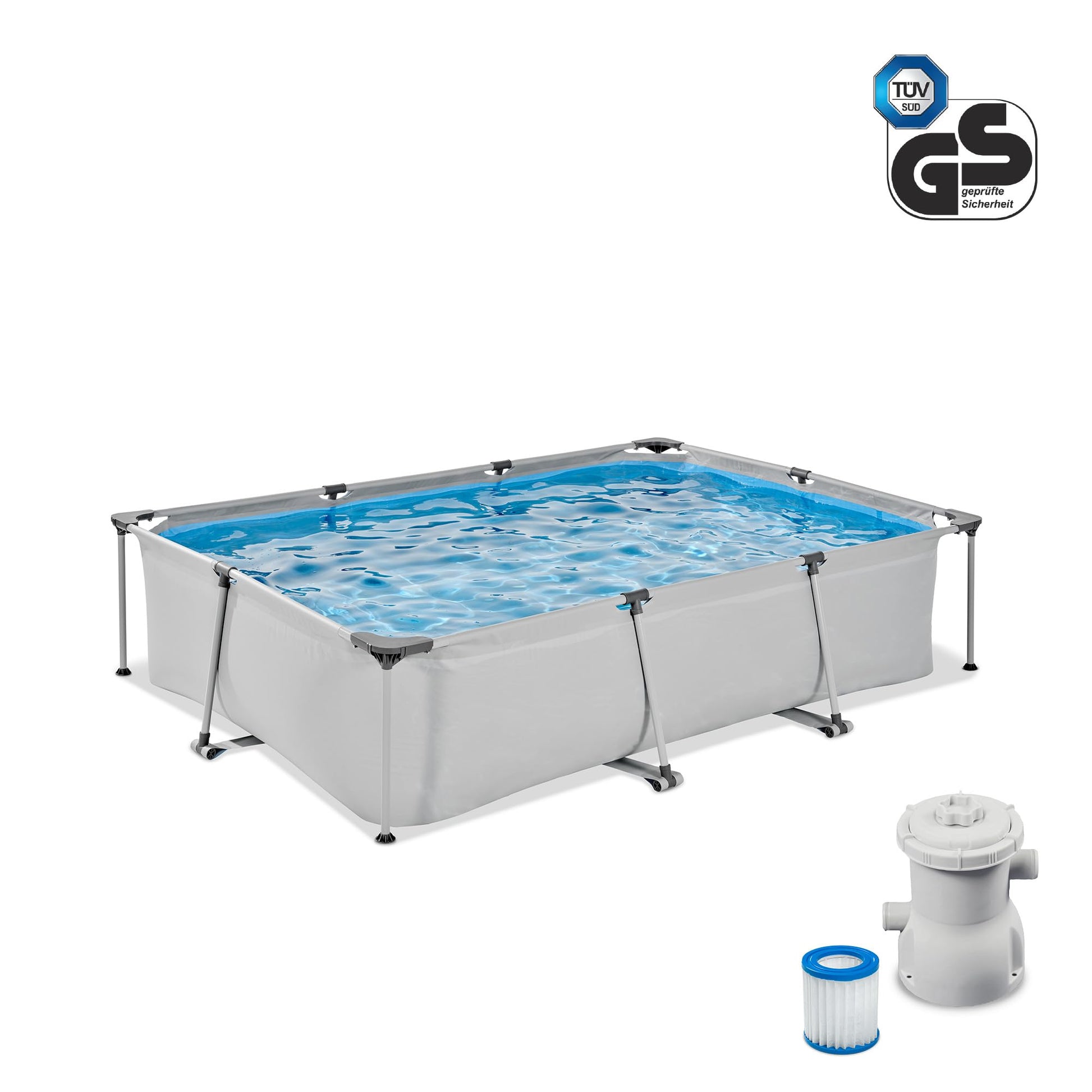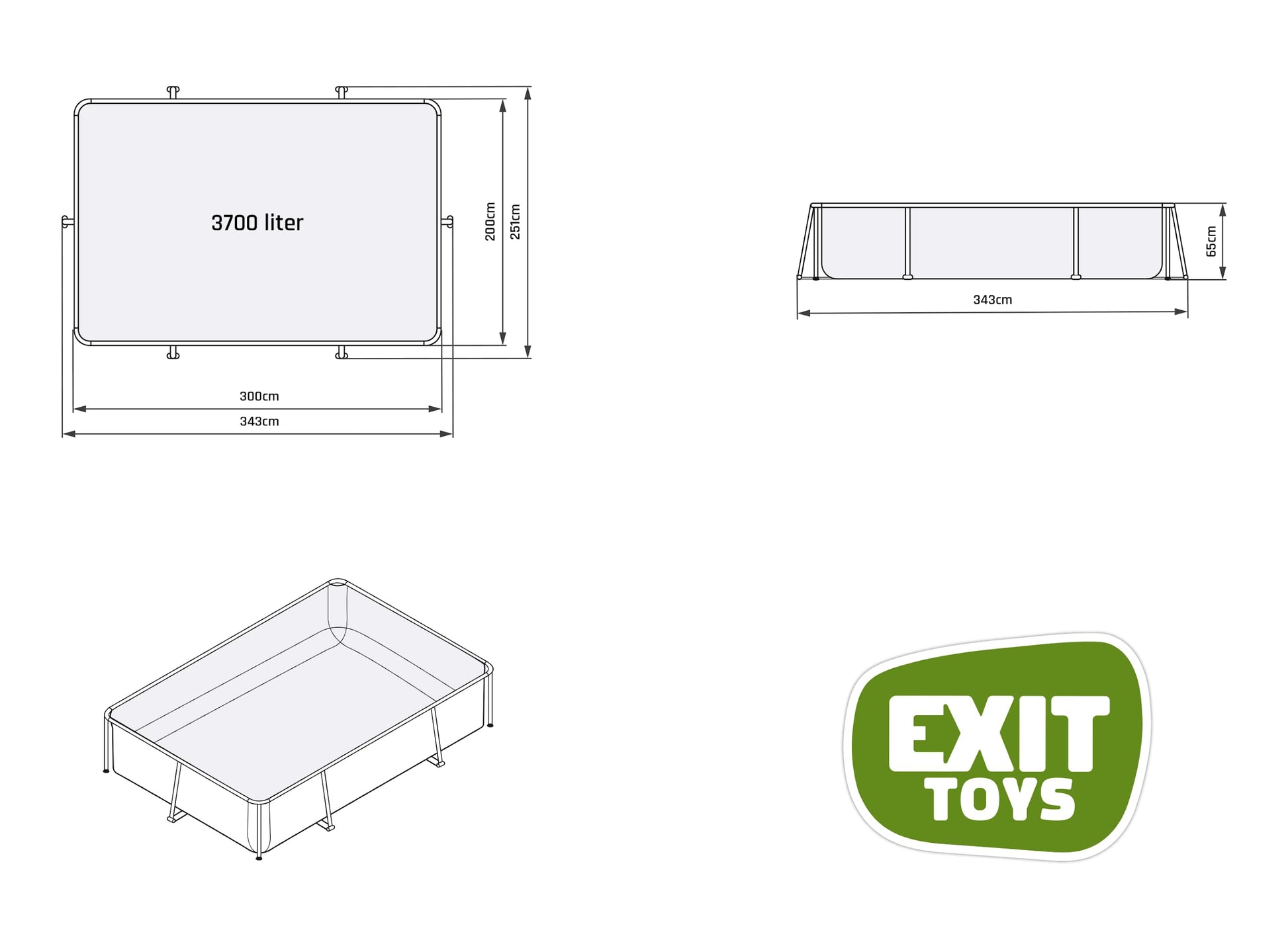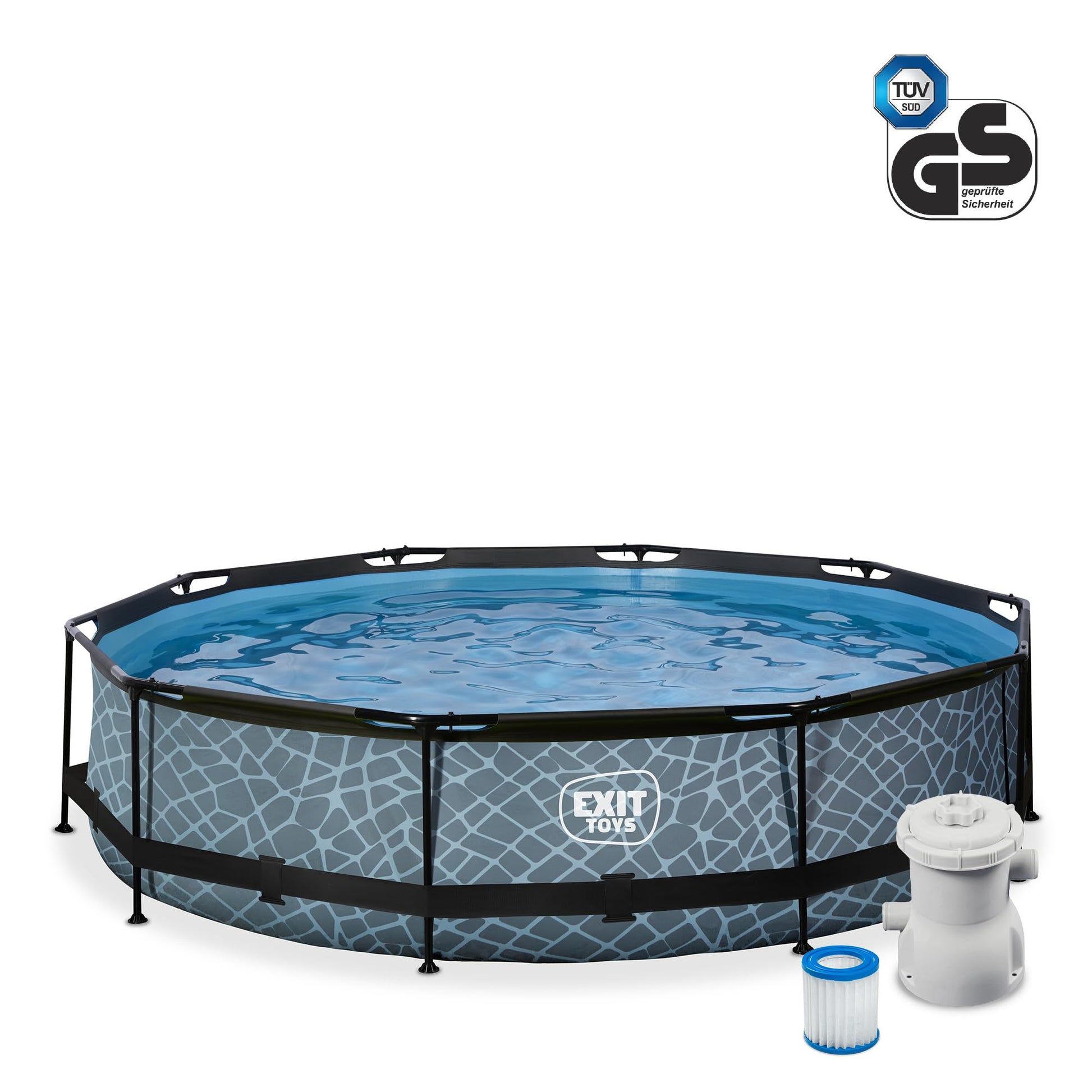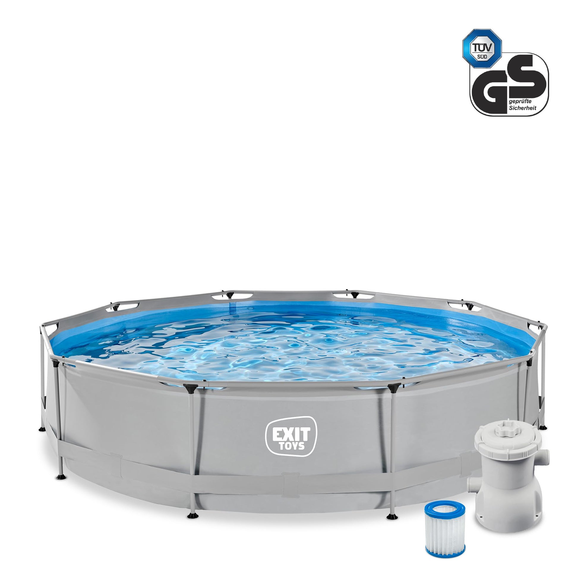 EXIT Toys Soft Grey Pool - 300x200x65cm - Rechteckiger, Kompakter Rahmenpool mit Kartuschenfilterpumpe - Leicht Zugänglich - Für Kleinkinder Geeignet - Starker Rahmen - Einzigartiges Design - Grau