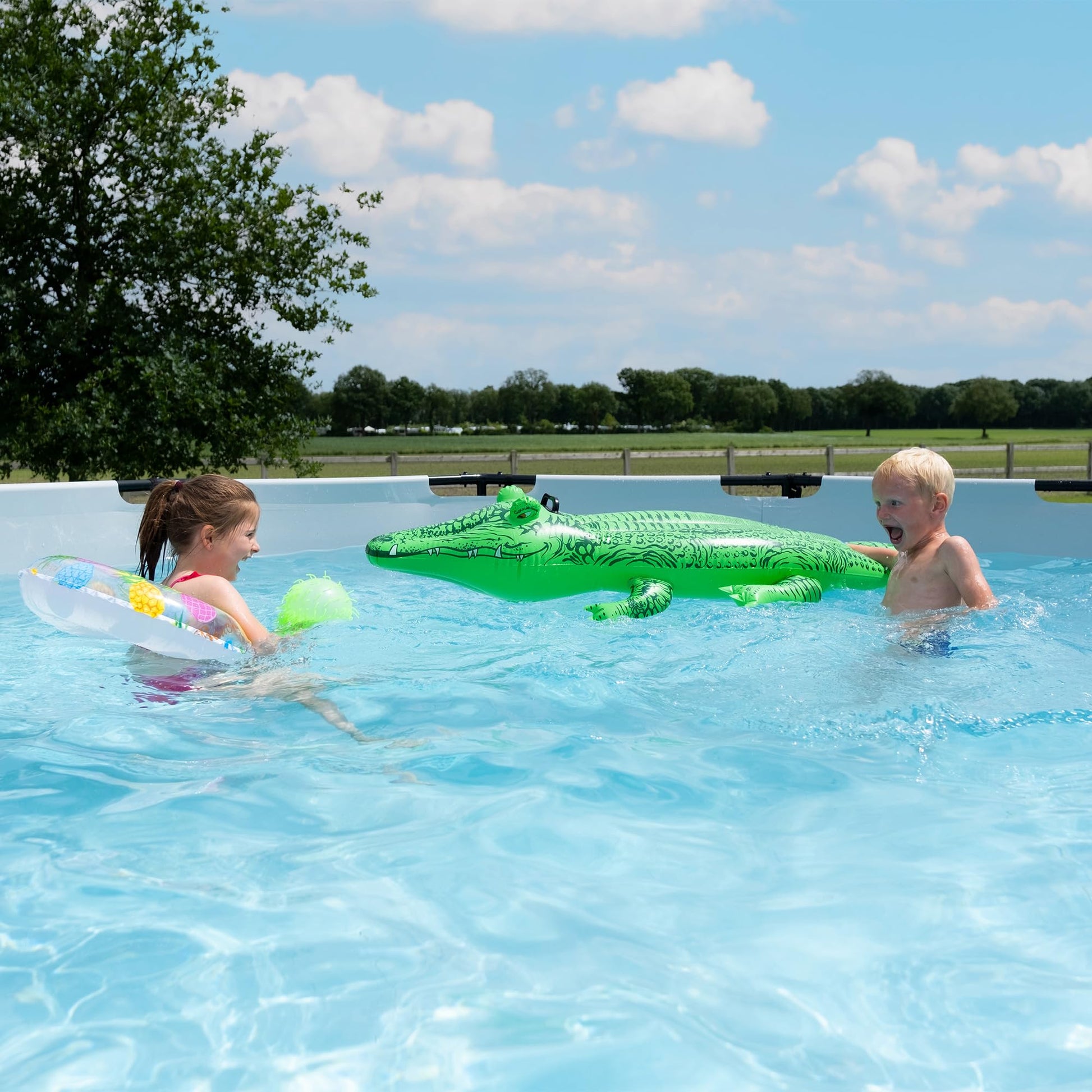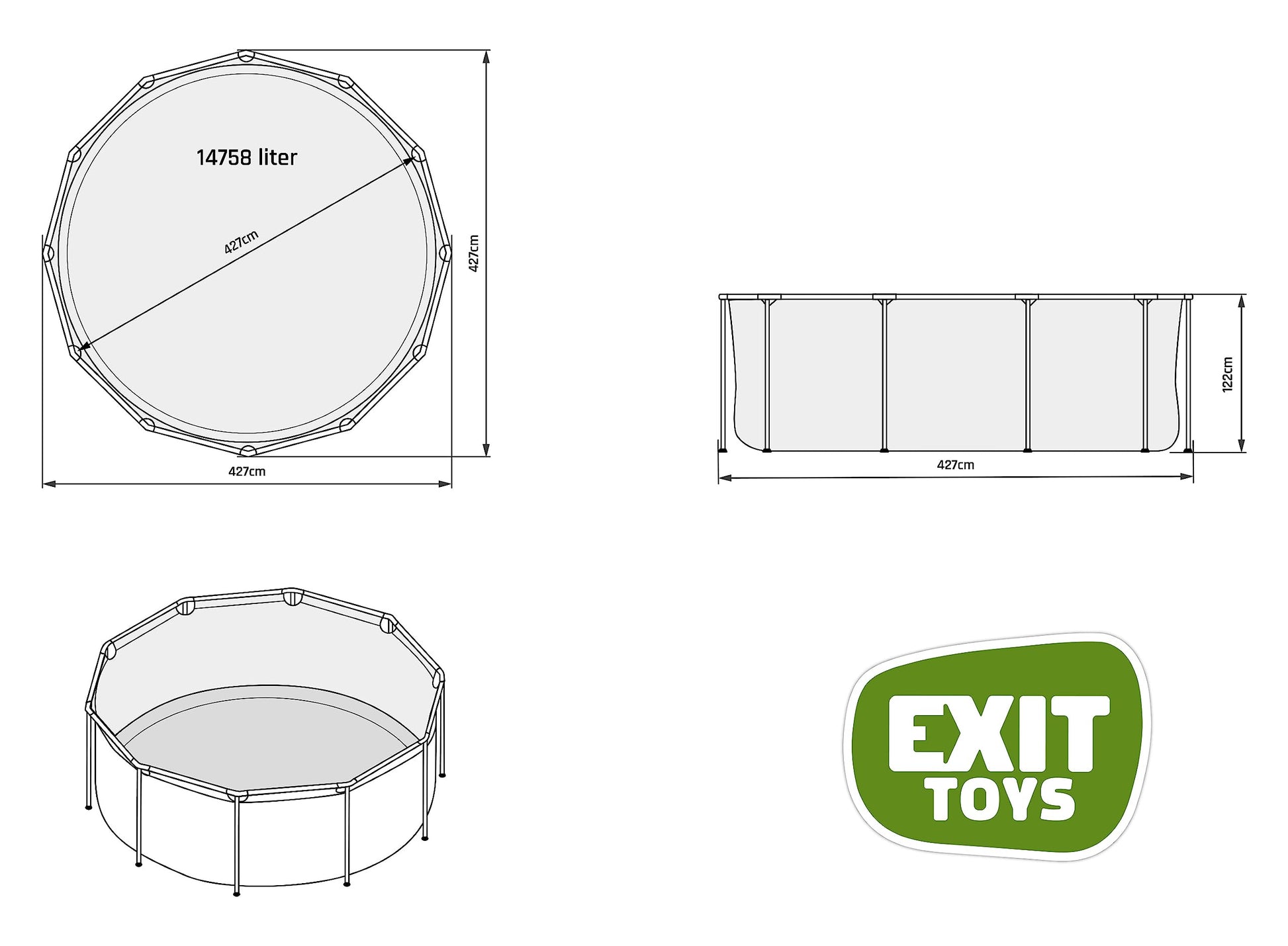 - Der pulverbeschichtete stählerne Rahmen und die starken Eckpunkte des EXIT Soft Grey Pools sorgen dafür, dass der Pool immer stabil ist und jahrelang hält.