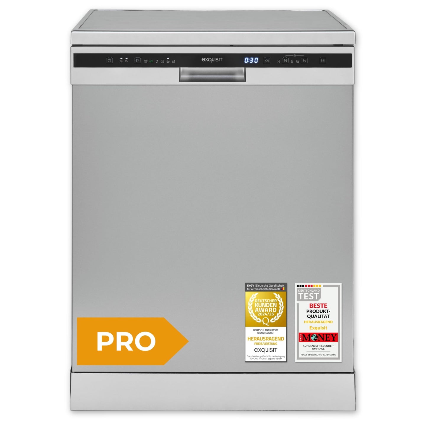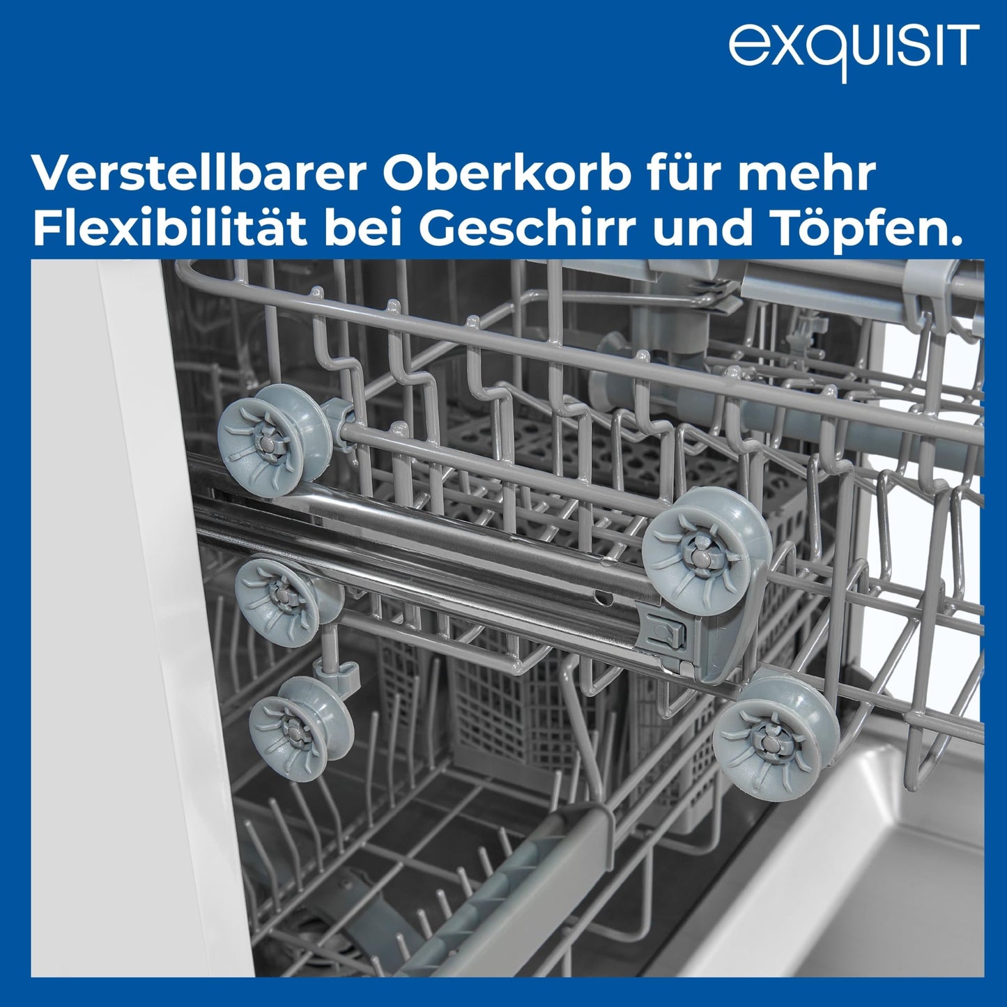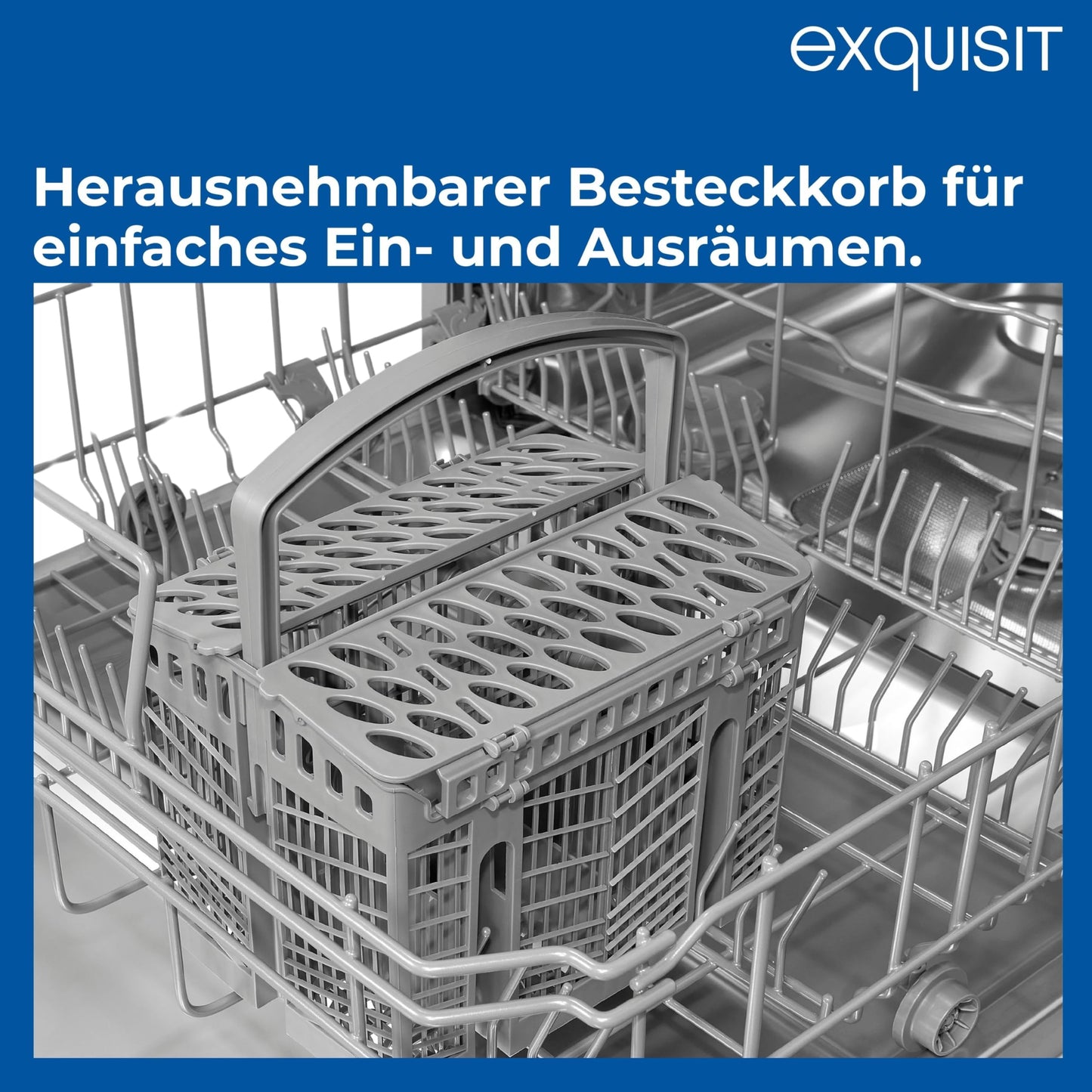 Exquisit PRO GSP56314-030C Dishwasher 60 cm, Undermountable, Energy Efficiency Class: C, 14 Place Settings, Cutlery Drawer, Automatic Door Opening, Delay Start, 11 Litres, Silver