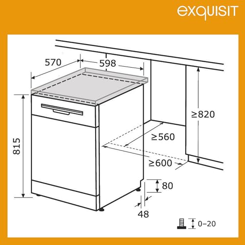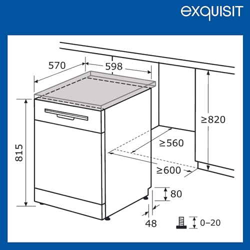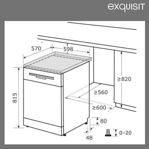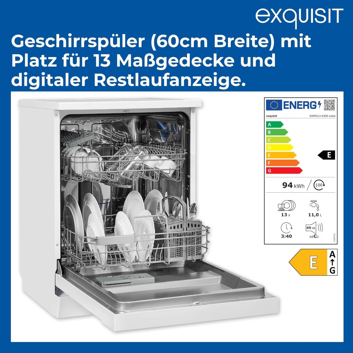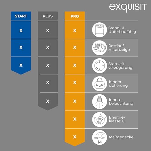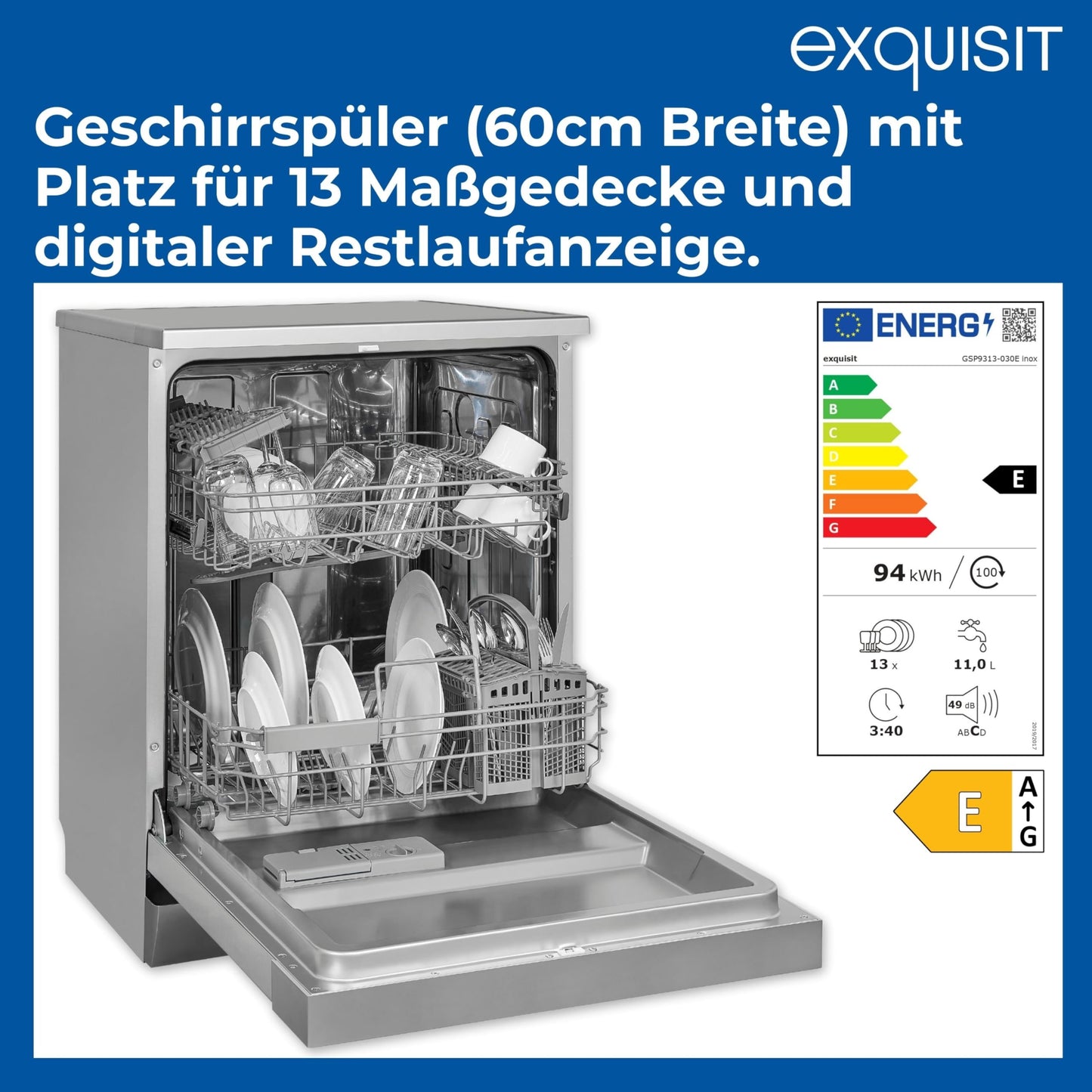 Exquisit PRO GSP56314-030C Dishwasher 60 cm, Undermountable, Energy Efficiency Class: C, 14 Place Settings, Cutlery Drawer, Automatic Door Opening, Delay Start, 11 Litres, Silver