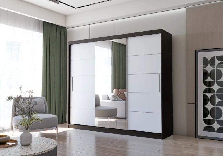 - Moderner Kleiderschrank mit Spiegel und dekorativen Zierleisten für stilvolle Wohnräume: Das elegante Design mit einer großen Spiegelfront verleiht dem Raum ein modernes und zeitloses Aussehen, während die optionalen Zierleisten zur Selbstmontage eine individuelle Gestaltung ermöglichen. Durch die reflektierende Oberfläche wird das Zimmer optisch vergrößert und heller, was besonders in kleineren Räumen für eine freundliche Atmosphäre sorgt.