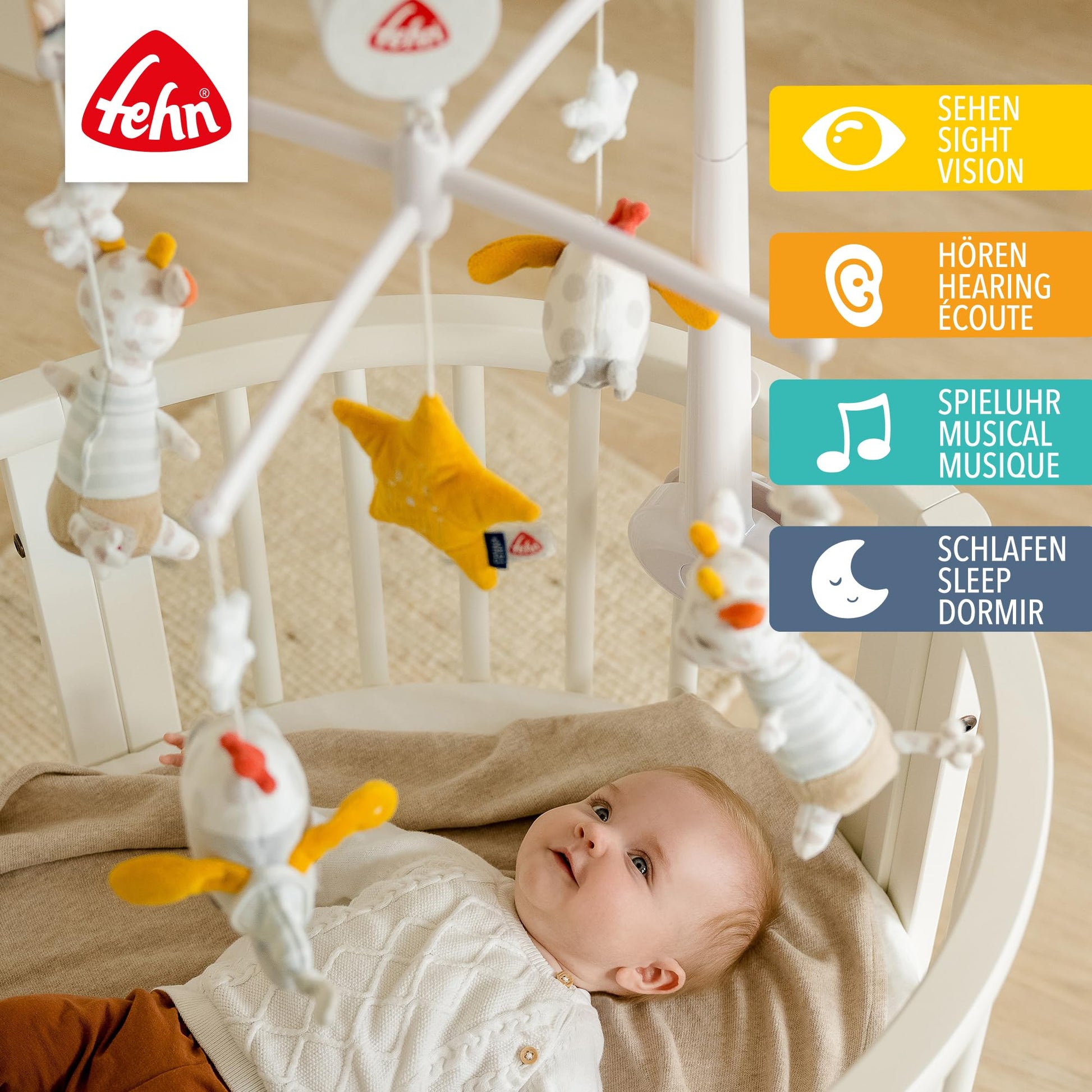 Fehn 053180 Good Night Music Mobile, With Melody "Weißt du wie viel Sternlein stehen" and Cute Figures with "Glow-in-the-Dark" Embroidery, For Babies from 0-5 Months, Size: Diameter 40 cm