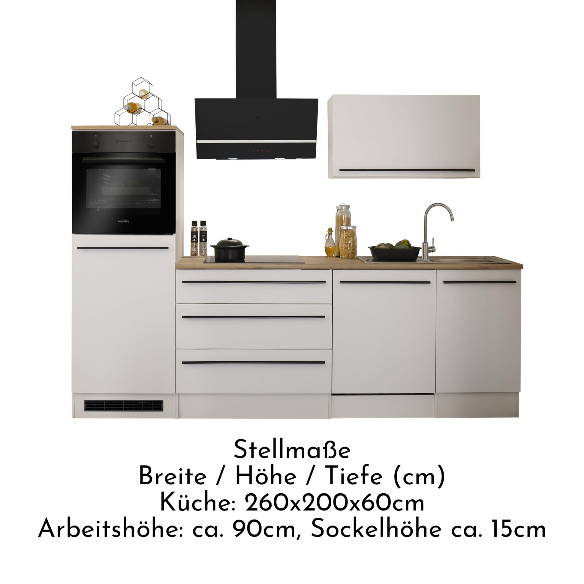 - Easy to assemble – the kitchen block is quick and easy to assemble thanks to the detailed instructions (English language not guaranteed) and therefore suitable for beginners. The mounting material is included. Dimensions: 260 x 200 x 60 cm (W x H x D).