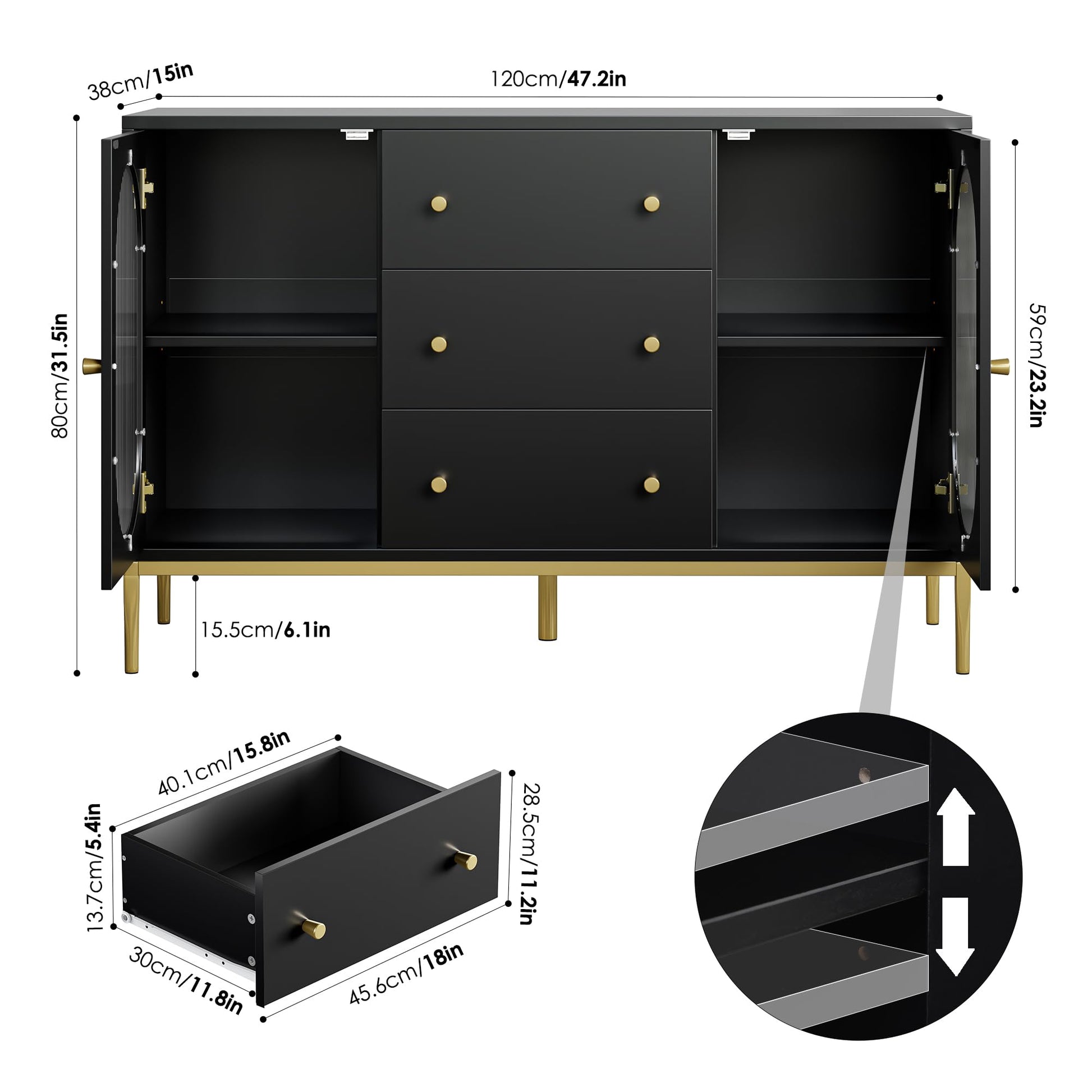 - Height Adjustable Shelf: Surprisingly, you can adjust the height of the shelf behind the door of the buffet cabinet according to the size of items to meet your different storage needs.