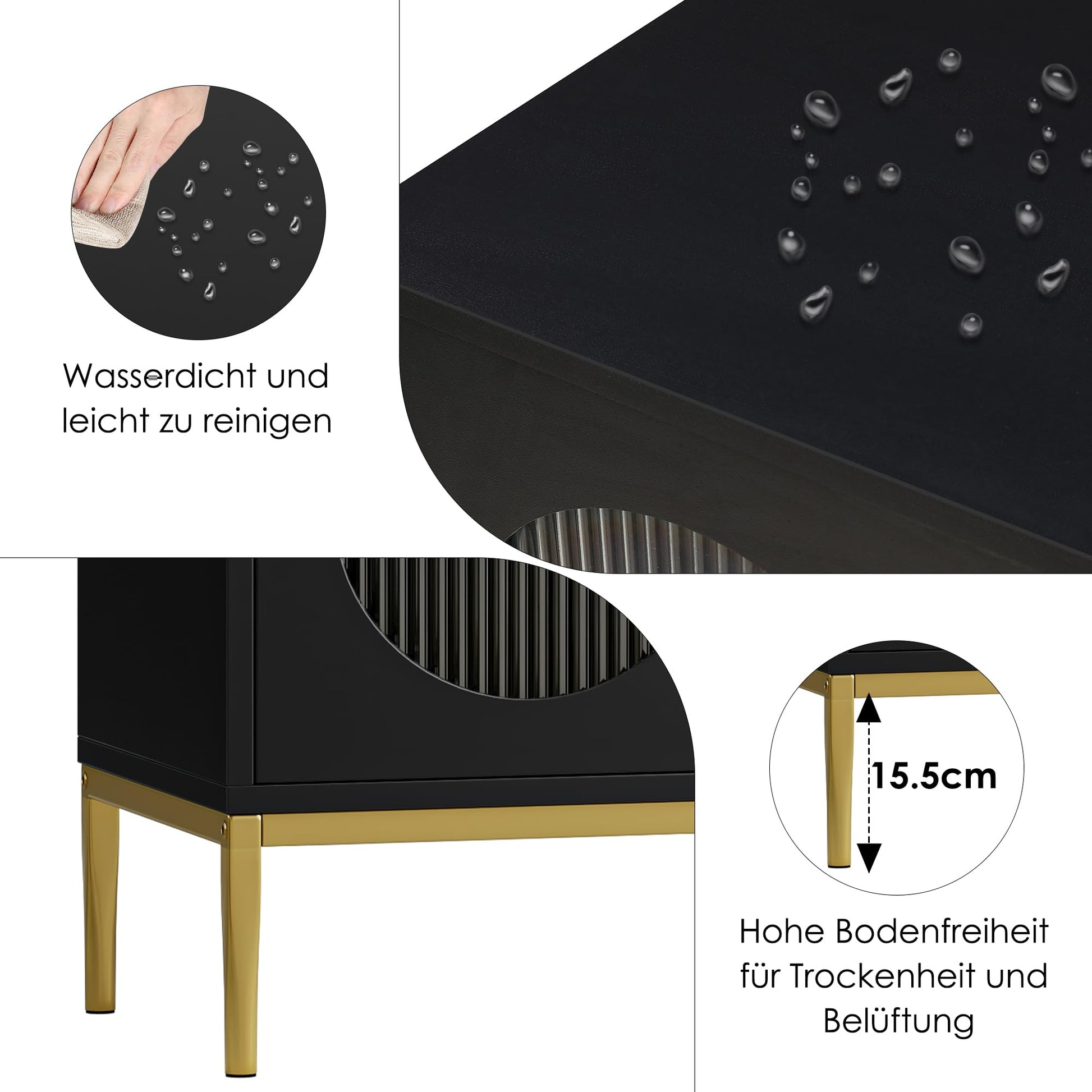 - HIGH QUALITY AND STURDY The wooden living room cabinet is finely crafted, its waterproof surface is easy to clean and maintain. The iron feet and tilt protection device together give the sideboard a high level of stability.