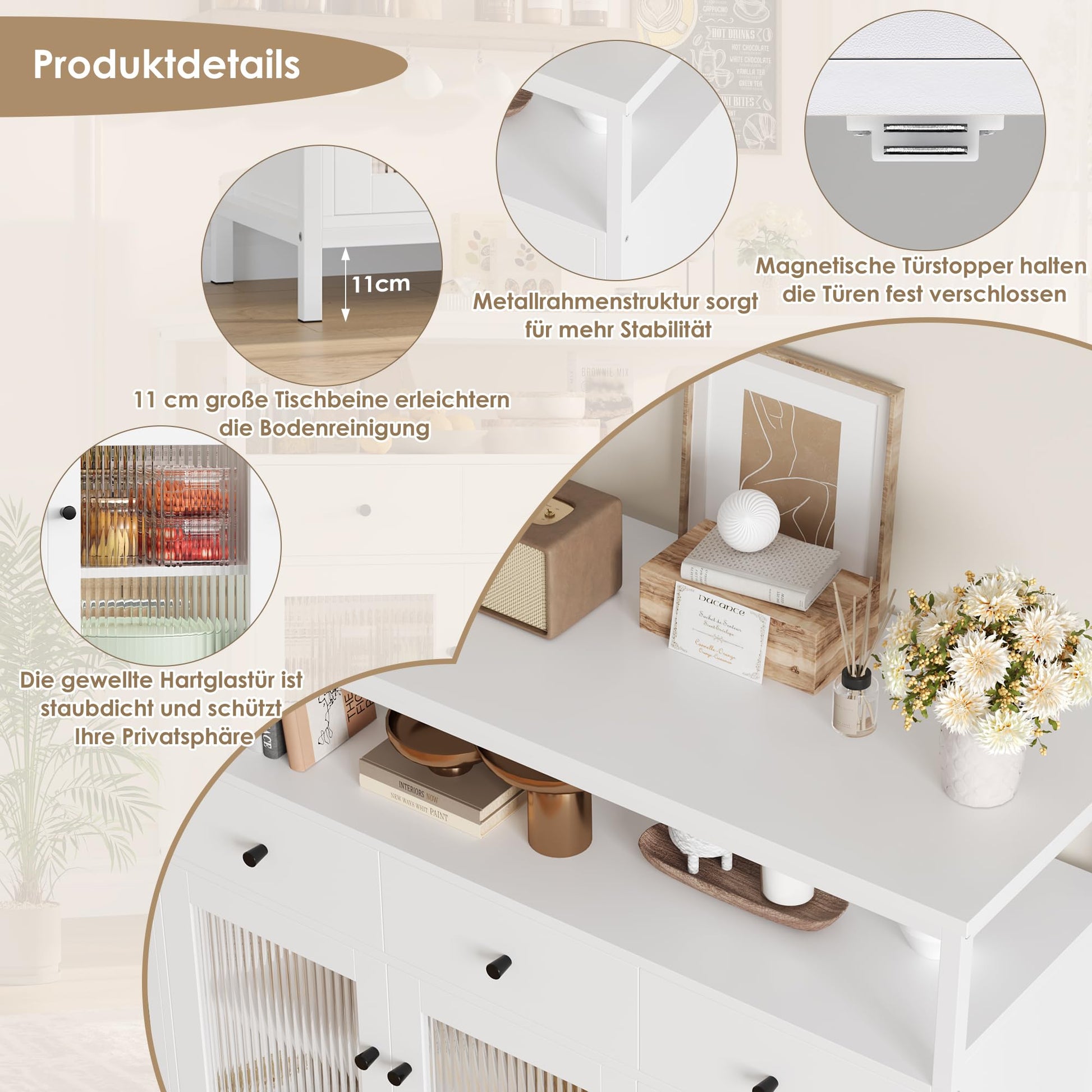 - 【Müheloser Aufbau】Dank der klaren Anleitung und der gekennzeichneten Zubehörteile ist die Montage dieses Buffetschranks ein Kinderspiel. Außerdem wird die weiße Kommode zur Lieferung in 2 Pakete aufgeteilt. Bitte haben Sie etwas Geduld und warten Sie die Ankunft der 2 Pakete ab vor dem Zusammenbauen