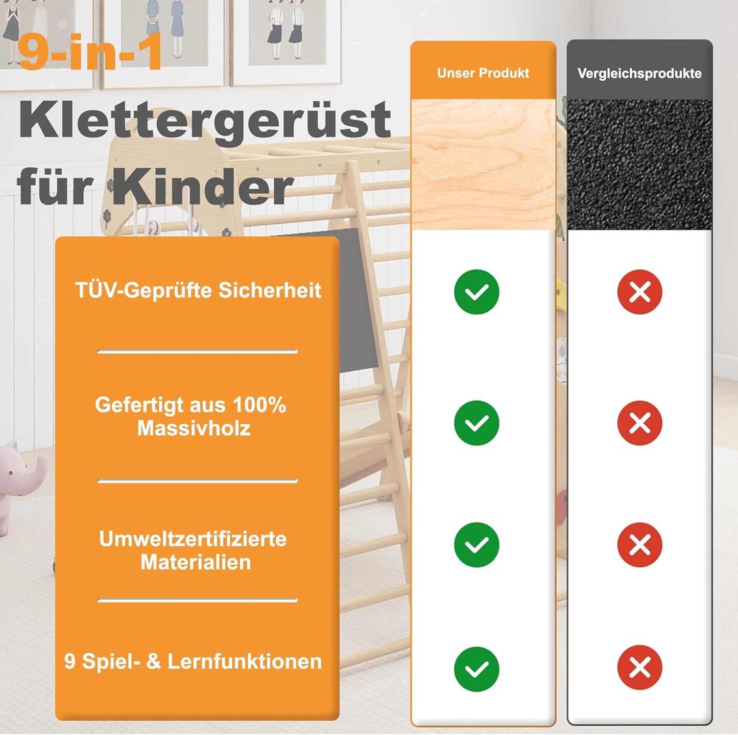 - Zertifizierte Sicherheit:100% natürliches Massivholz-Klettergerüst mit CE, ASTM, CPSIA. TÜV-geprüfte Sicherheit für Kinder von 1-6 Jahren.