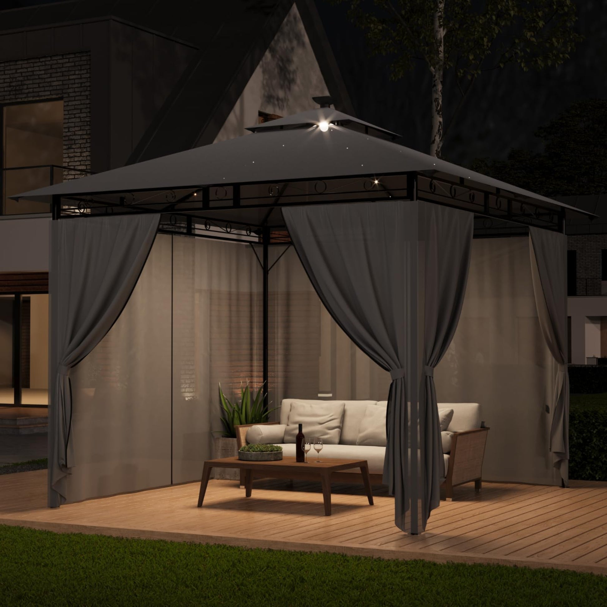 Gazebo 3 x 3 Waterproof Stable Winterproof, Garden Gazebo, Tarpaulin, Garden Gazebo, Metal Frame Gazebo, Grey