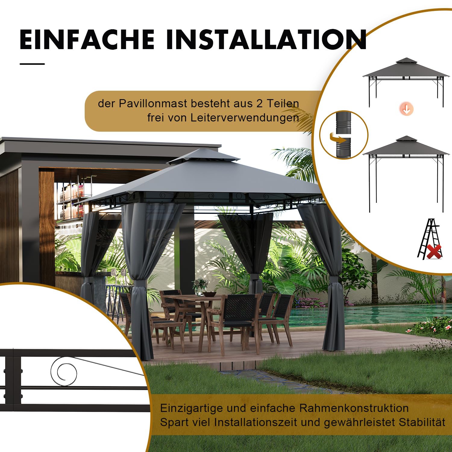 - Ideal gathering space: This 3 x 3 metre tent is suitable for small family reunions of 4-6 people and allows you to spend a nice time with friends and family. The 285 cm high design provides plenty of room to move, while the rust-resistant, coated alloy material ensures a longer service life, so you can enjoy long-lasting protection and reduce maintenance costs.