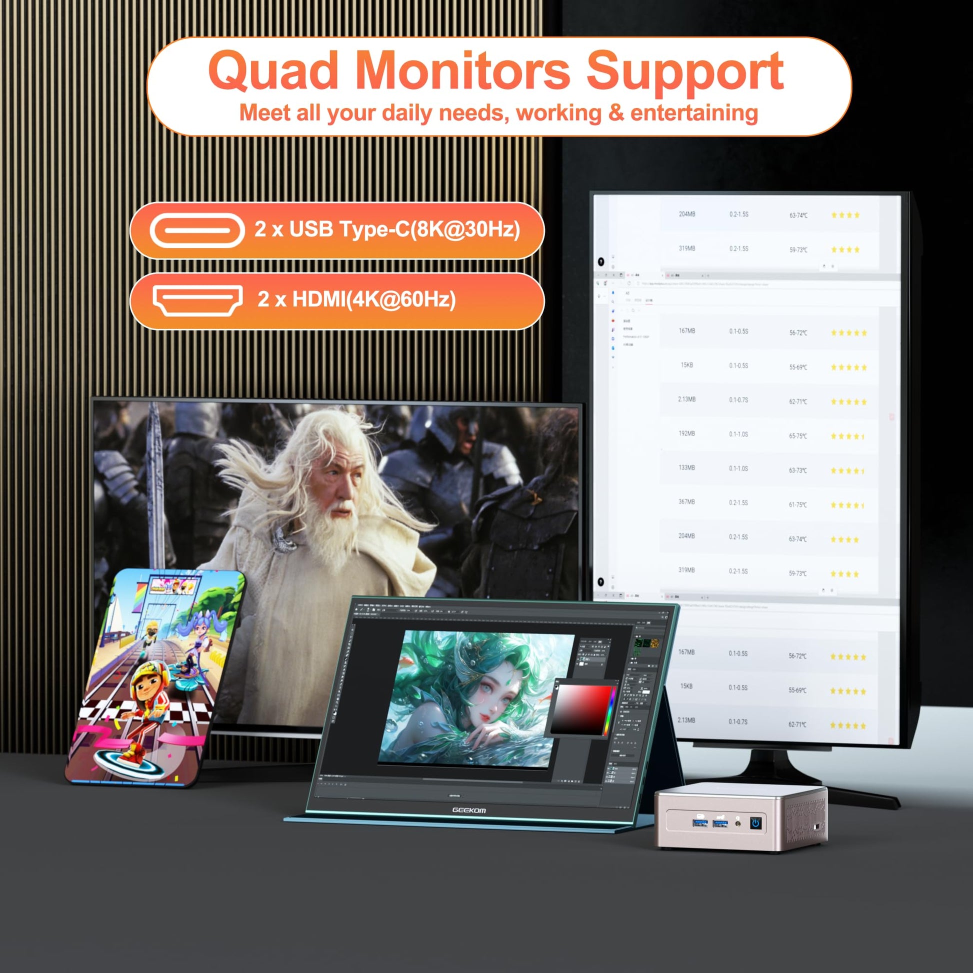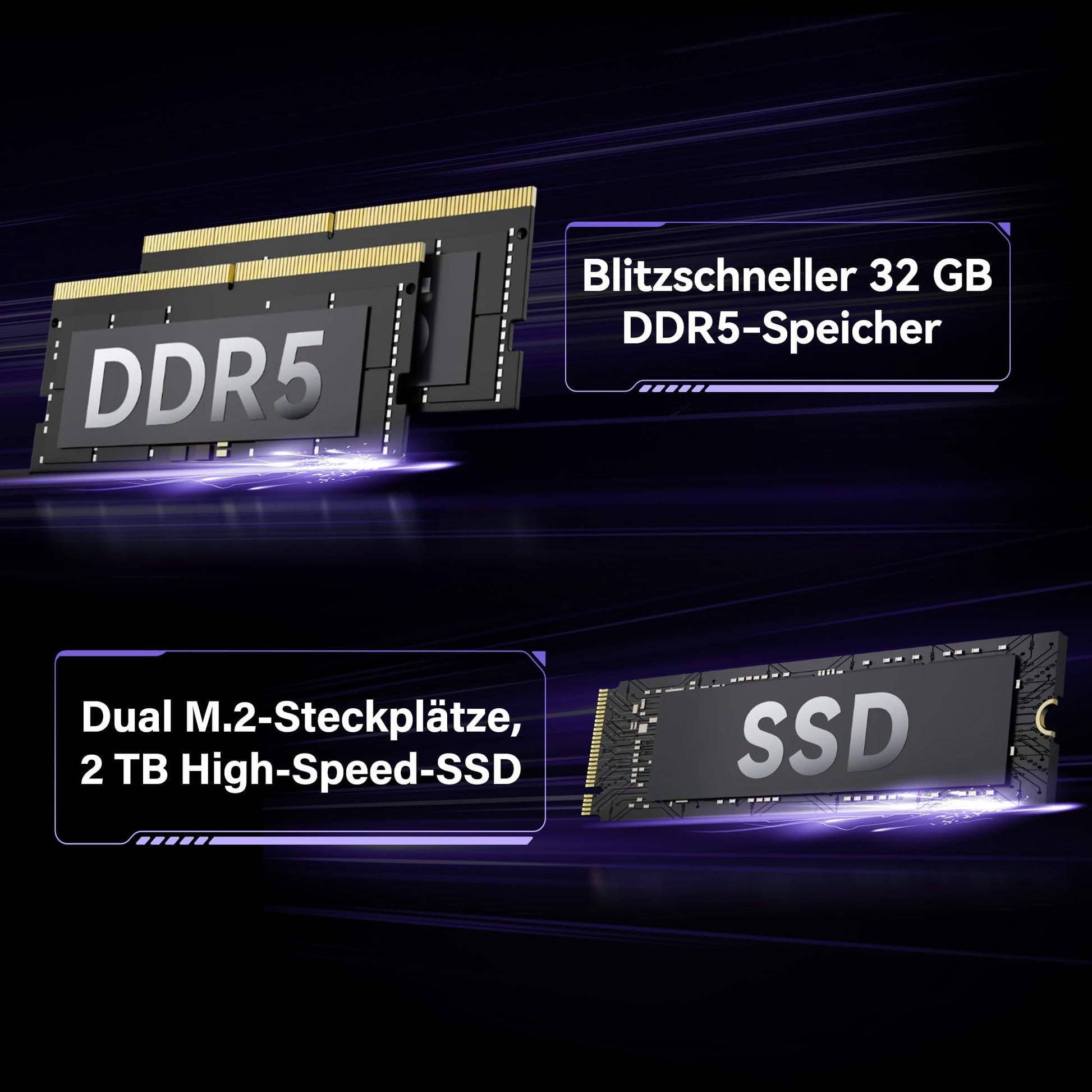 - High-speed memory and huge capacity: the GEEKOM Megamini G1 desktop gamer PC has 32 GB DDR5 dual channel RAM with speeds of up to 5600 MT/s, ensuring smooth performance for memory-intensive tasks. Combined with a 2TB high-speed SSD and dual M.2 NVMe PCIe 4.0 interfaces, it offers fast response times, fast data transfer and superior overall performance compared to older models.