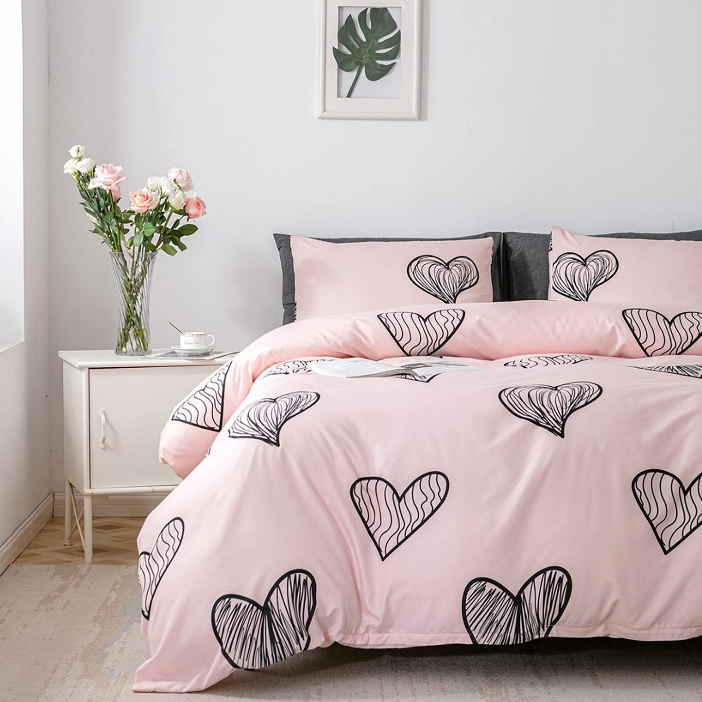 - Heart pattern: A cute and romantic heart pattern printed on the light pink bedding set, perfect for girls' and women's rooms.