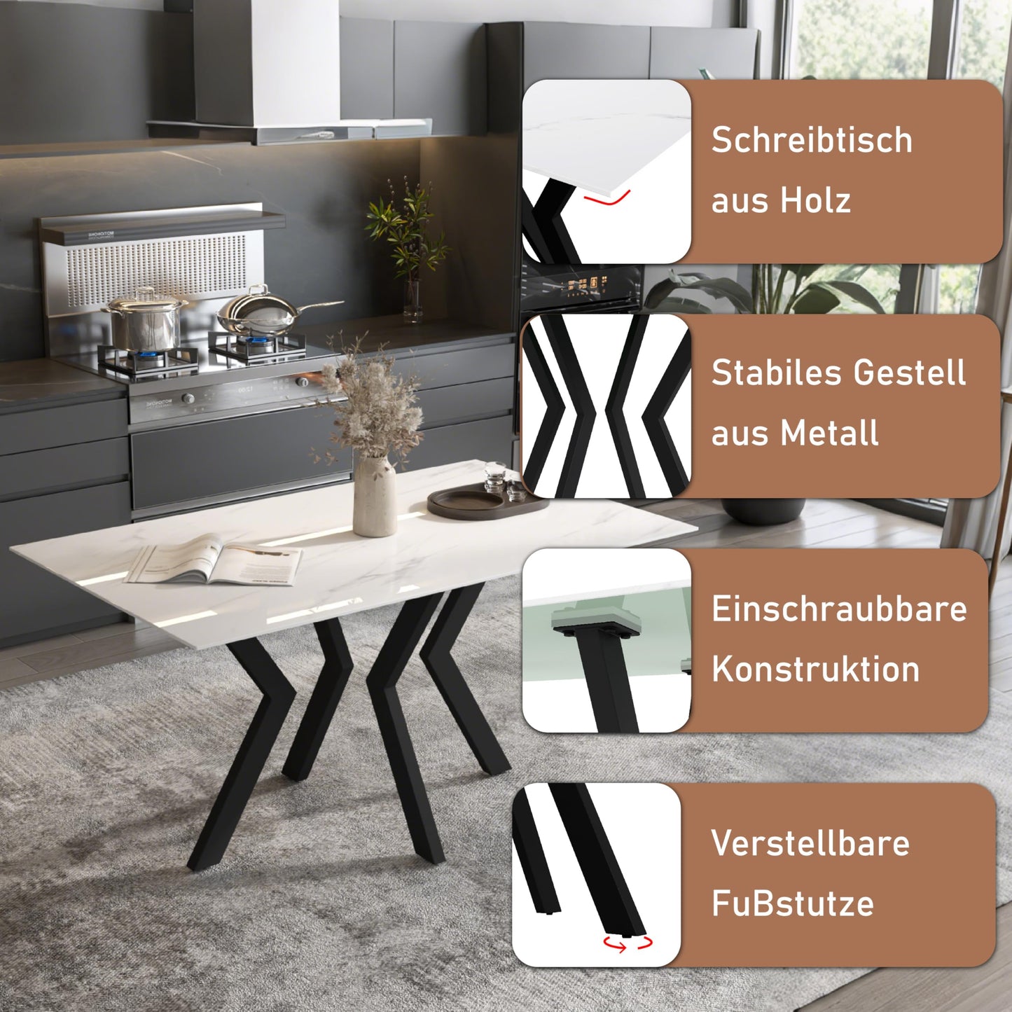 - Die Größe des Tisches: Die Größe des Tisches beträgt 110 x 70 x 75 cm, geeignet für Wohnzimmer, Küche, Büro usw.