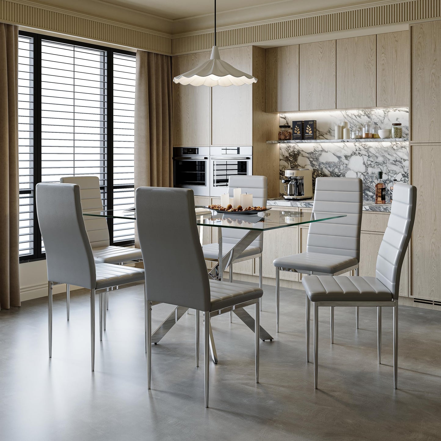 - Einzigartiges Design: Die Kombination aus transparentem Glas und silberne tischbeine bietet verschiedene Stile. An den Tischbeinen befinden sich rutschfeste Polster, die den Tisch stabil machen können, ohne zu verrutschen.
