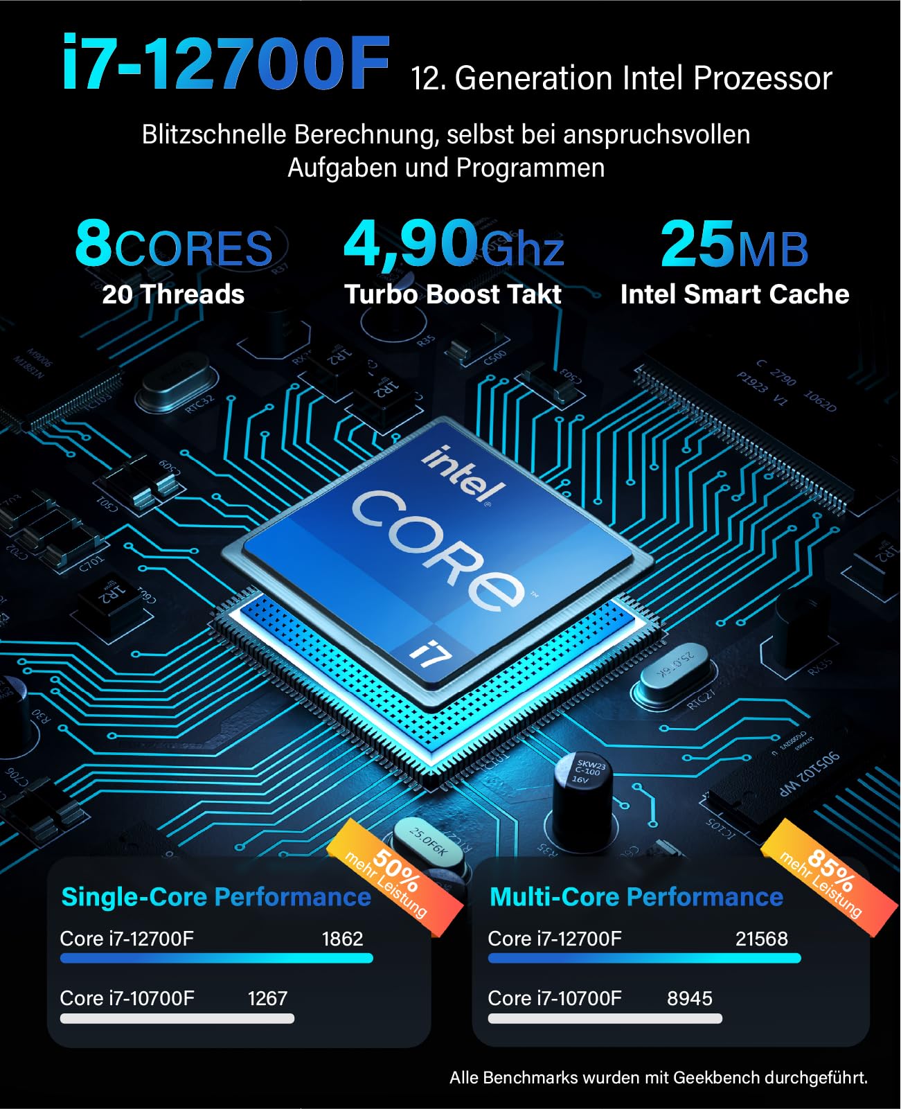 Greed® Ultra V2 PC mit Intel Core i7 12700F - Schneller Rechner - Computer für Büro & Home Office mit 4,8 GHZ - 32GB RAM/Arbeitsspeicher - 1TB SSD + 1TB HDD - DVD+RW - USB 3.1 - WLAN, inkl Win 11 Pro
