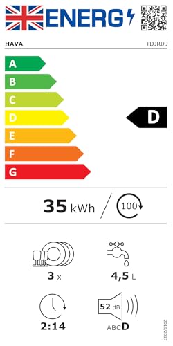 HAVA Dishwasher with Water Softener and Increased Energy Efficiency, Dishwasher with 8 Programmes, Child Lock & Delayed Start, No Installation Required