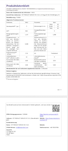 | Included components | Cutlery Basket, Drain Hose, Drying System, Instructions for use, Power cable |
