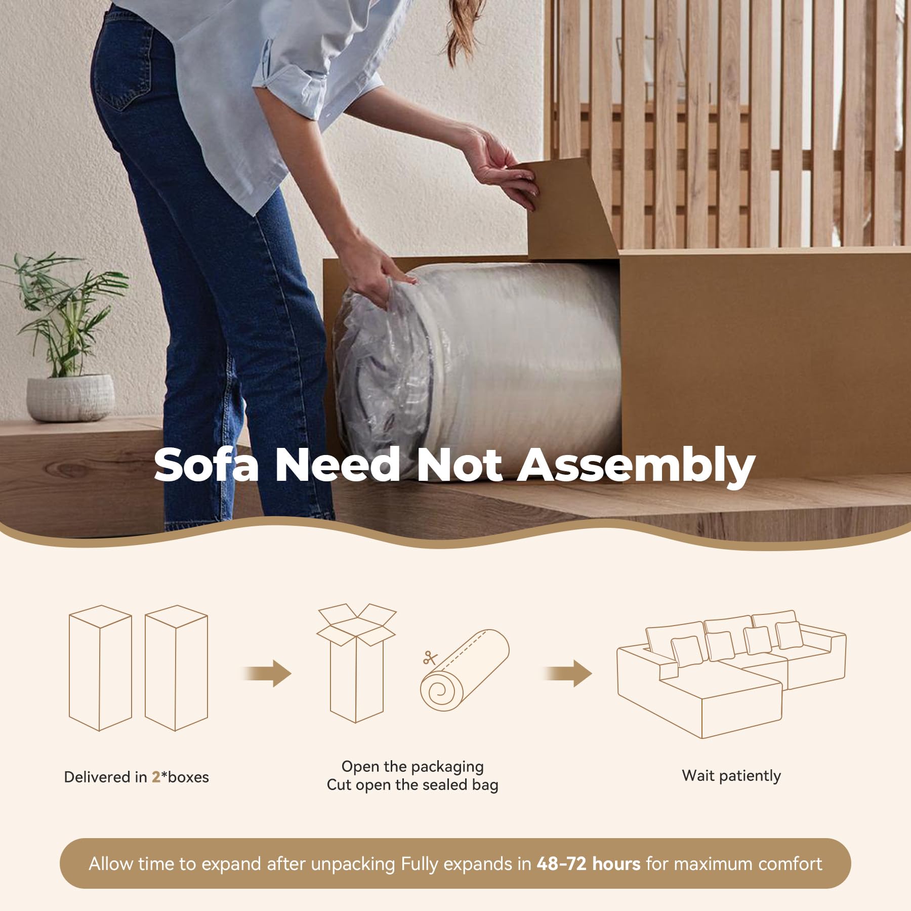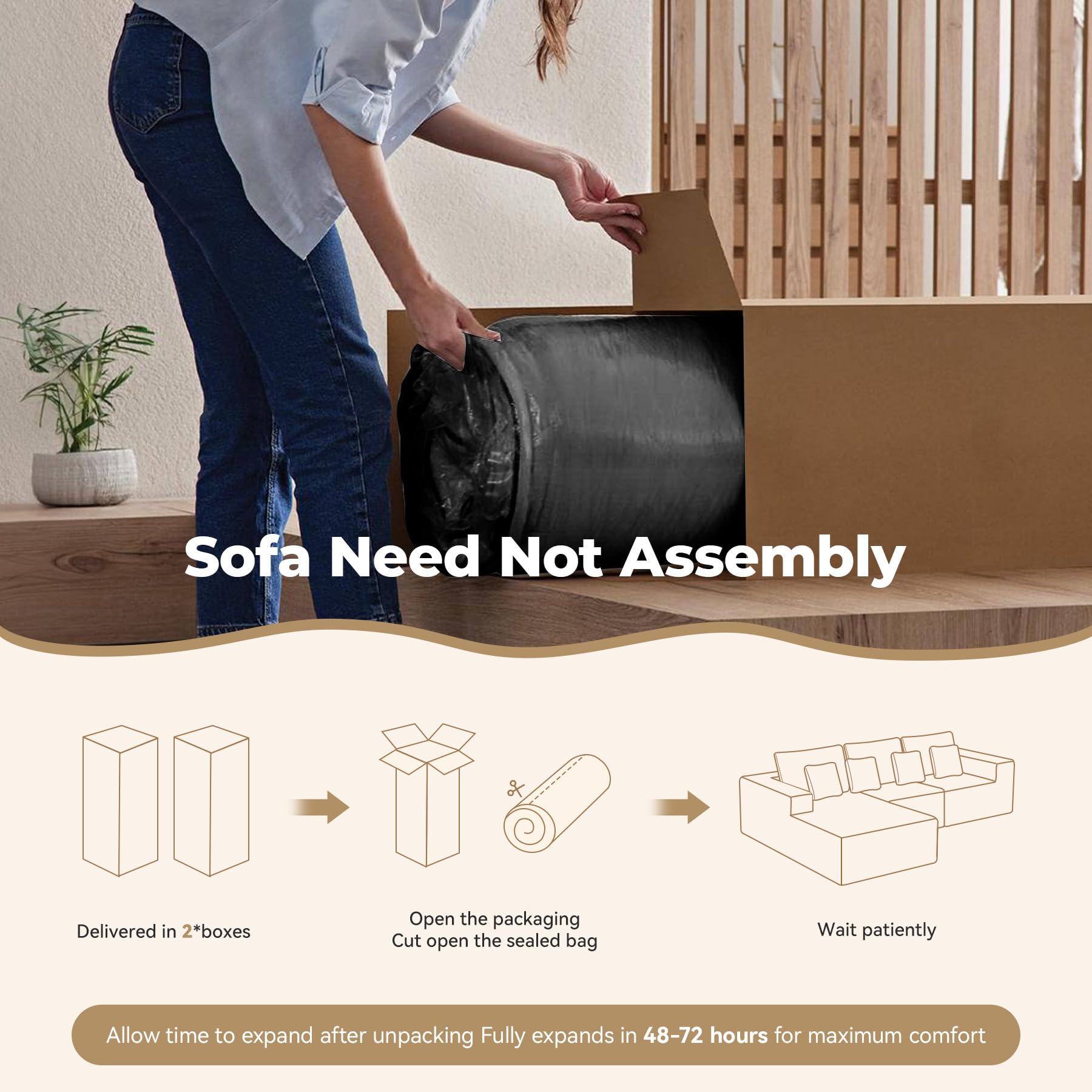 - NO ASSEMBLY REQUIRED: Ready to use - no tools or settings required. Simply unpack, cut open the packaging, leave for a few hours until it returns to its original shape, place in your living room and enjoy the cloud-like seating comfort.