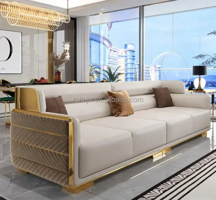 High-end combination sofa set Luxury gold stainless steel back Modern fabric Chesterfield 1 2 3 4-seat sofa Villa leisure