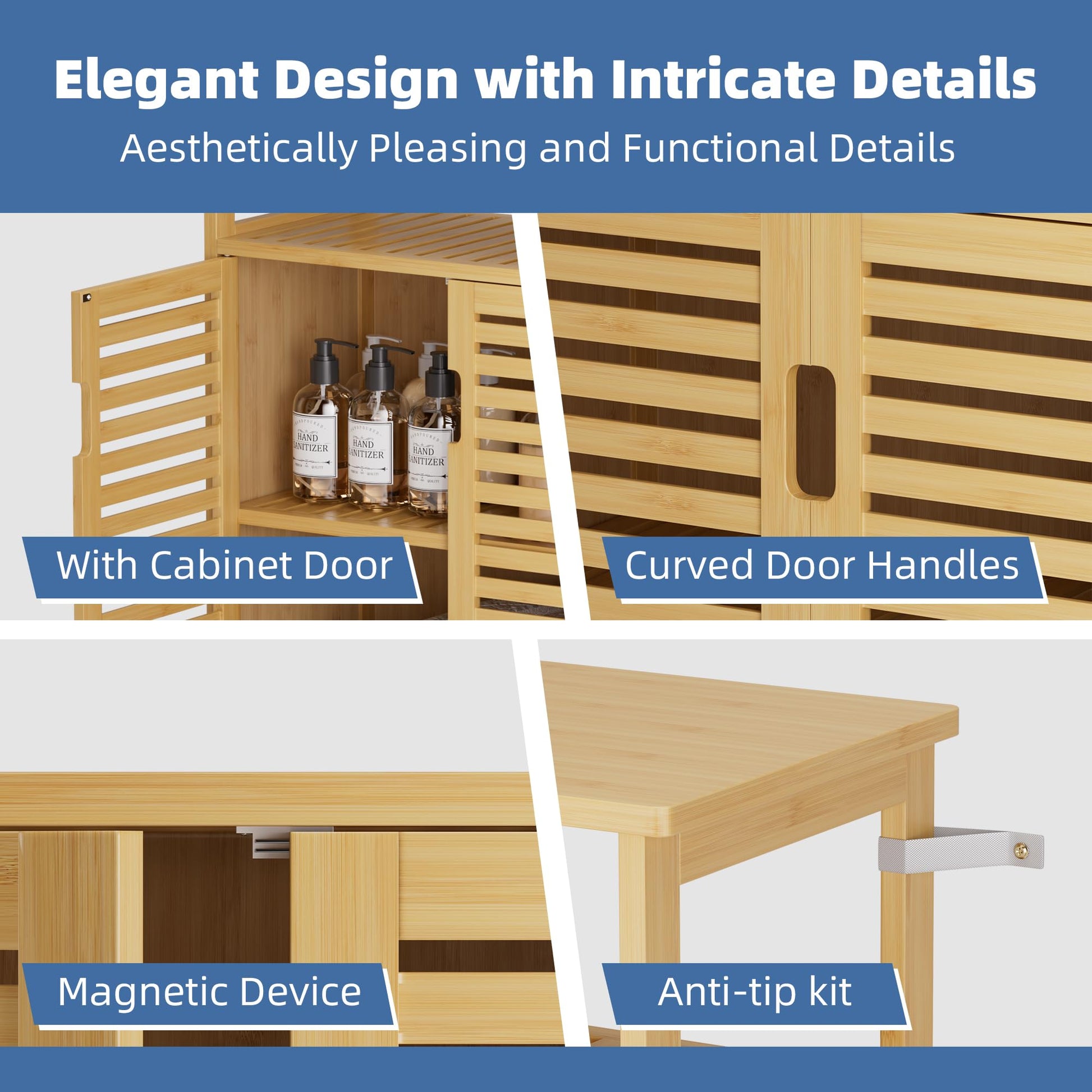 HITNET Bathroom Cabinet Bamboo Black Bathroom Cabinet with 2 Doors Freestanding Cabinet for Bathroom, Living Room and Bedroom